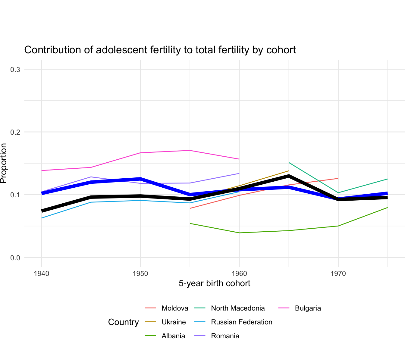 8.11.7 Contribution of adolescent fertility to total fertility by cohort