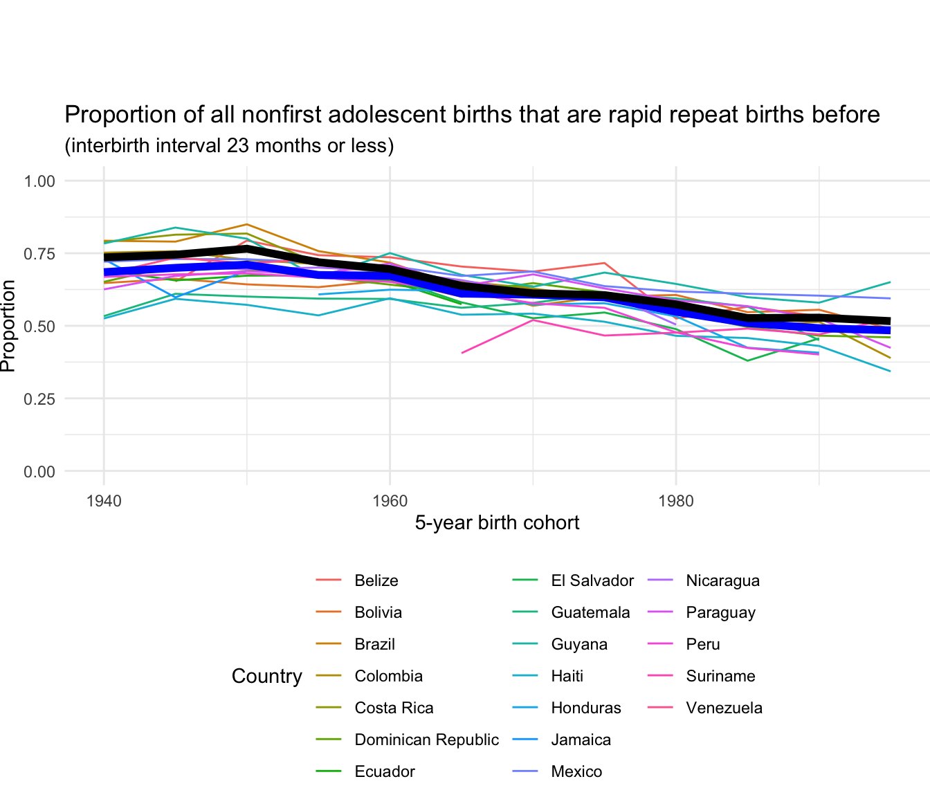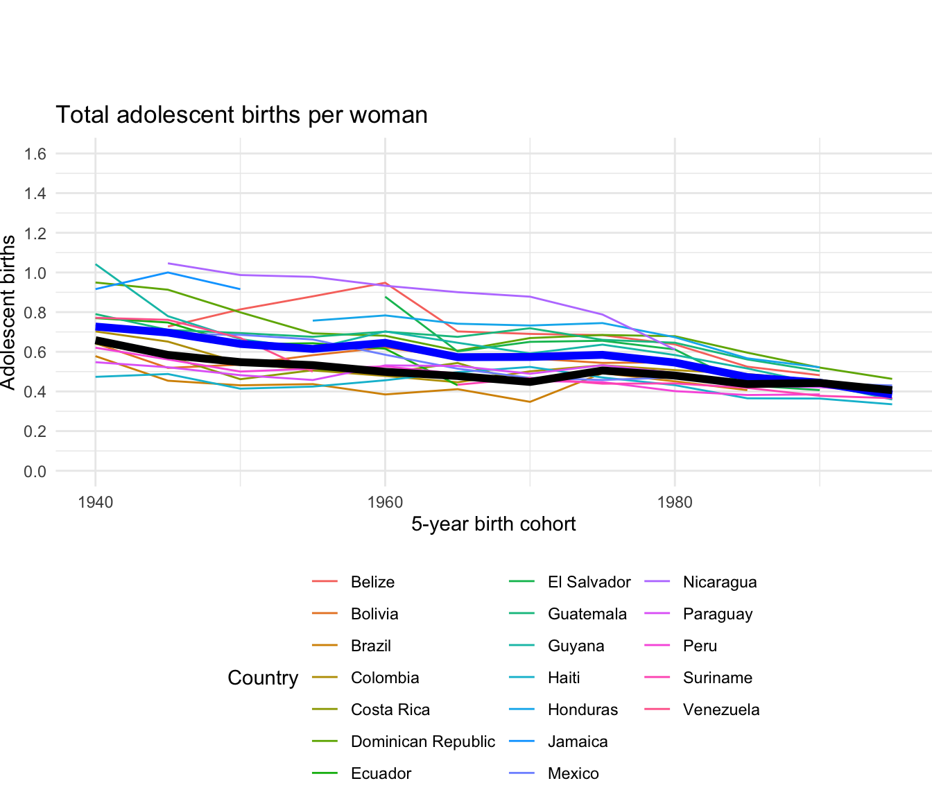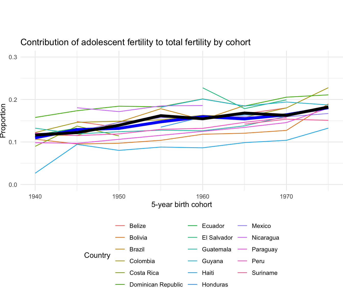 6.22.7 Contribution of adolescent fertility to total fertility by cohort
