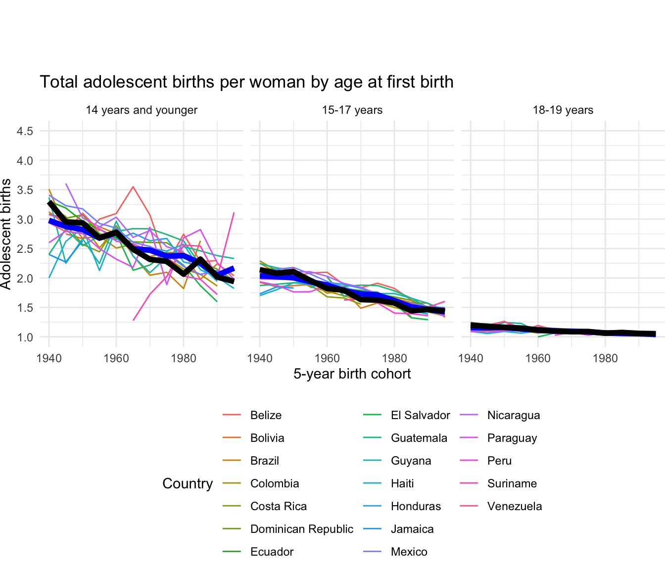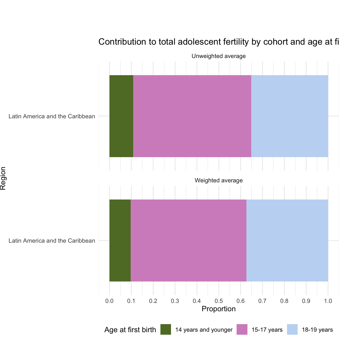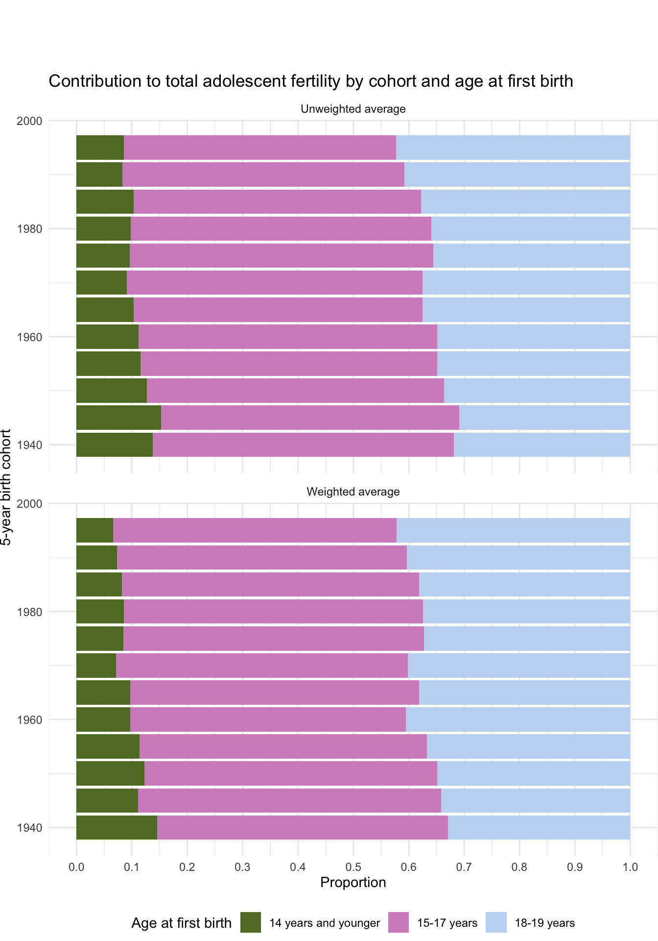 6.22.4 Contribution to total adolescent fertility by age at first birth (all cohorts)