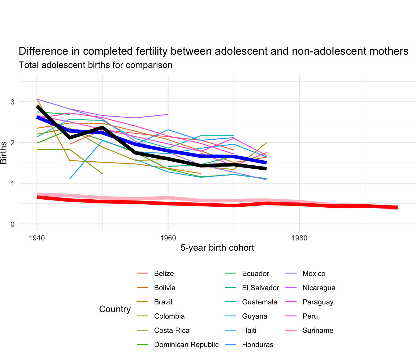 6.22.6 Difference in completed fertility between adolescent and non-adolescent mothers