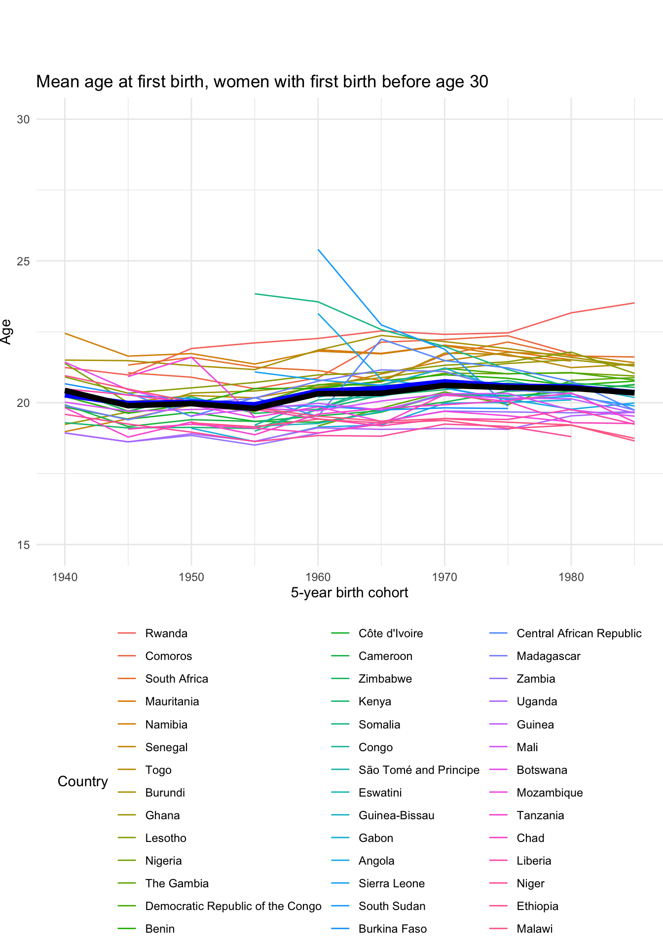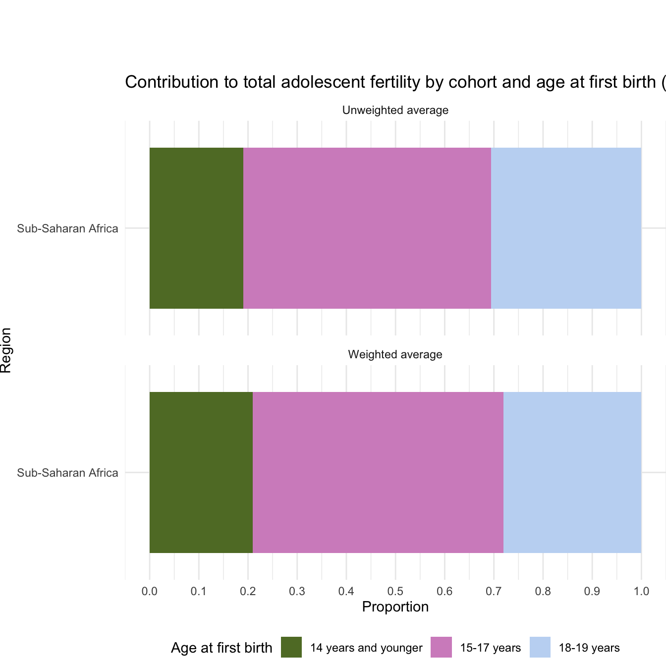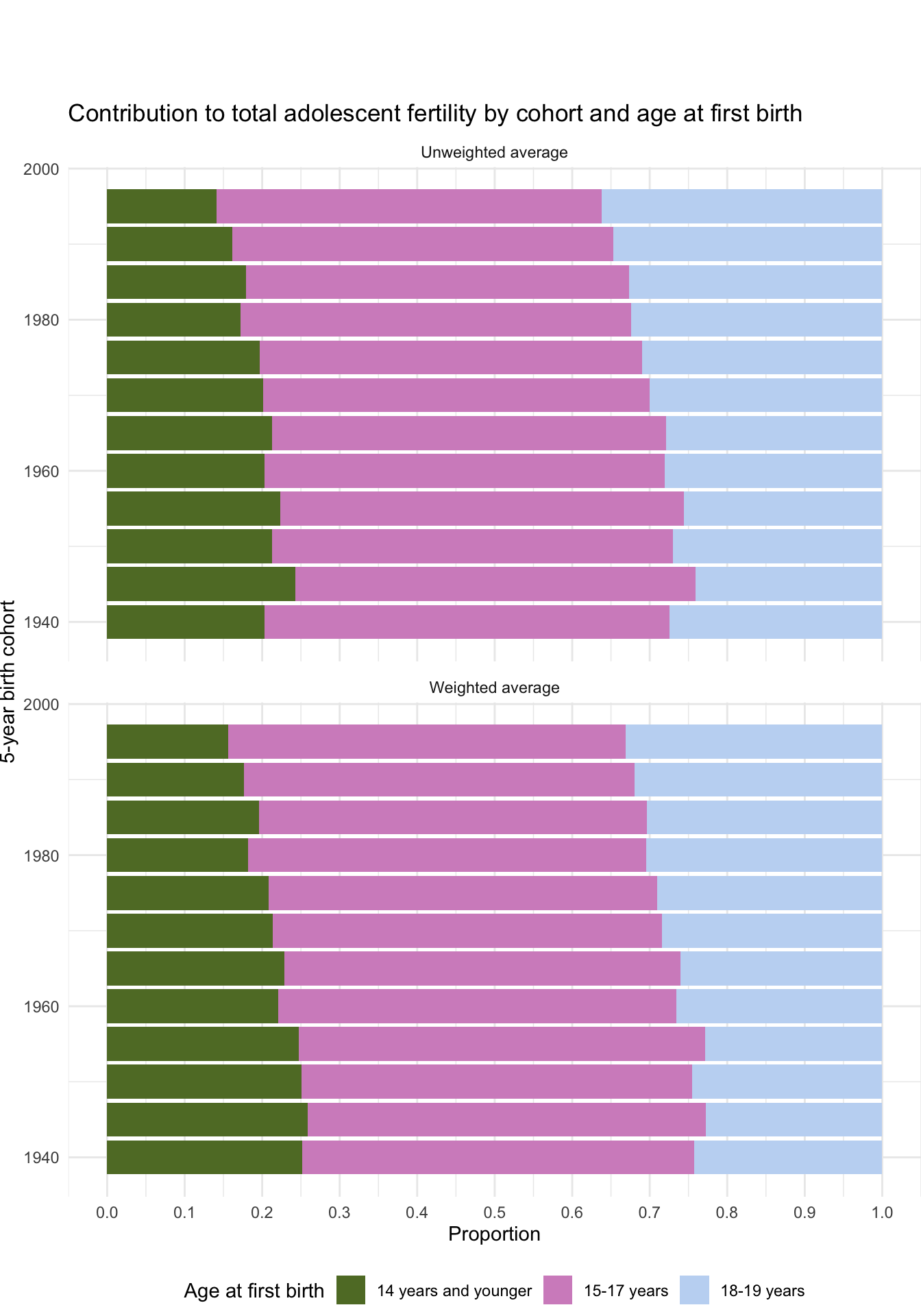 2.43.4 Contribution to total adolescent fertility by age at first birth (all cohorts)