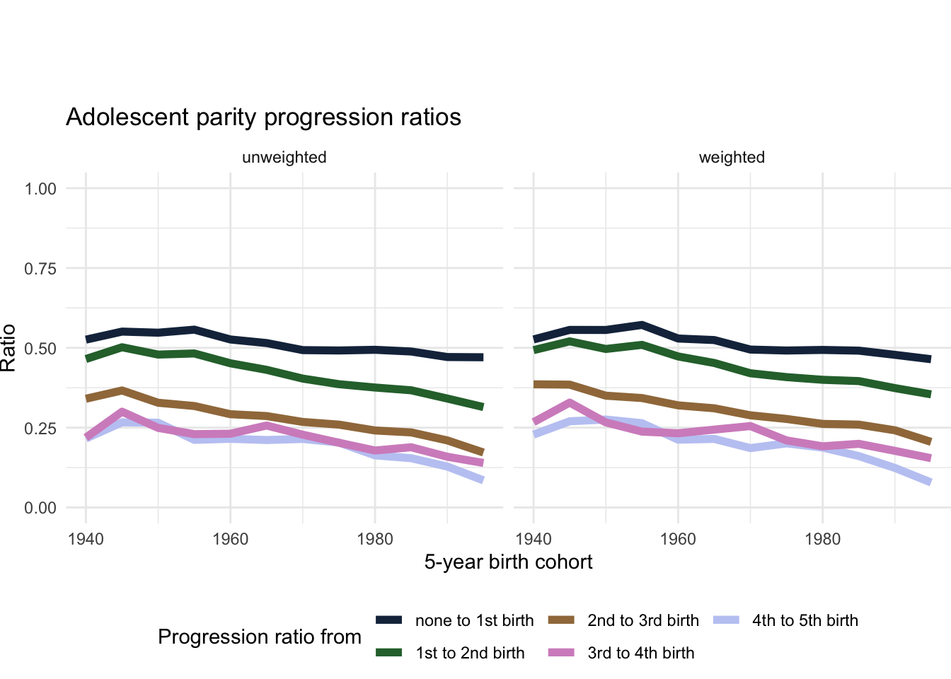 2.43.10 Adolescent parity progression ratios by age (all cohorts)