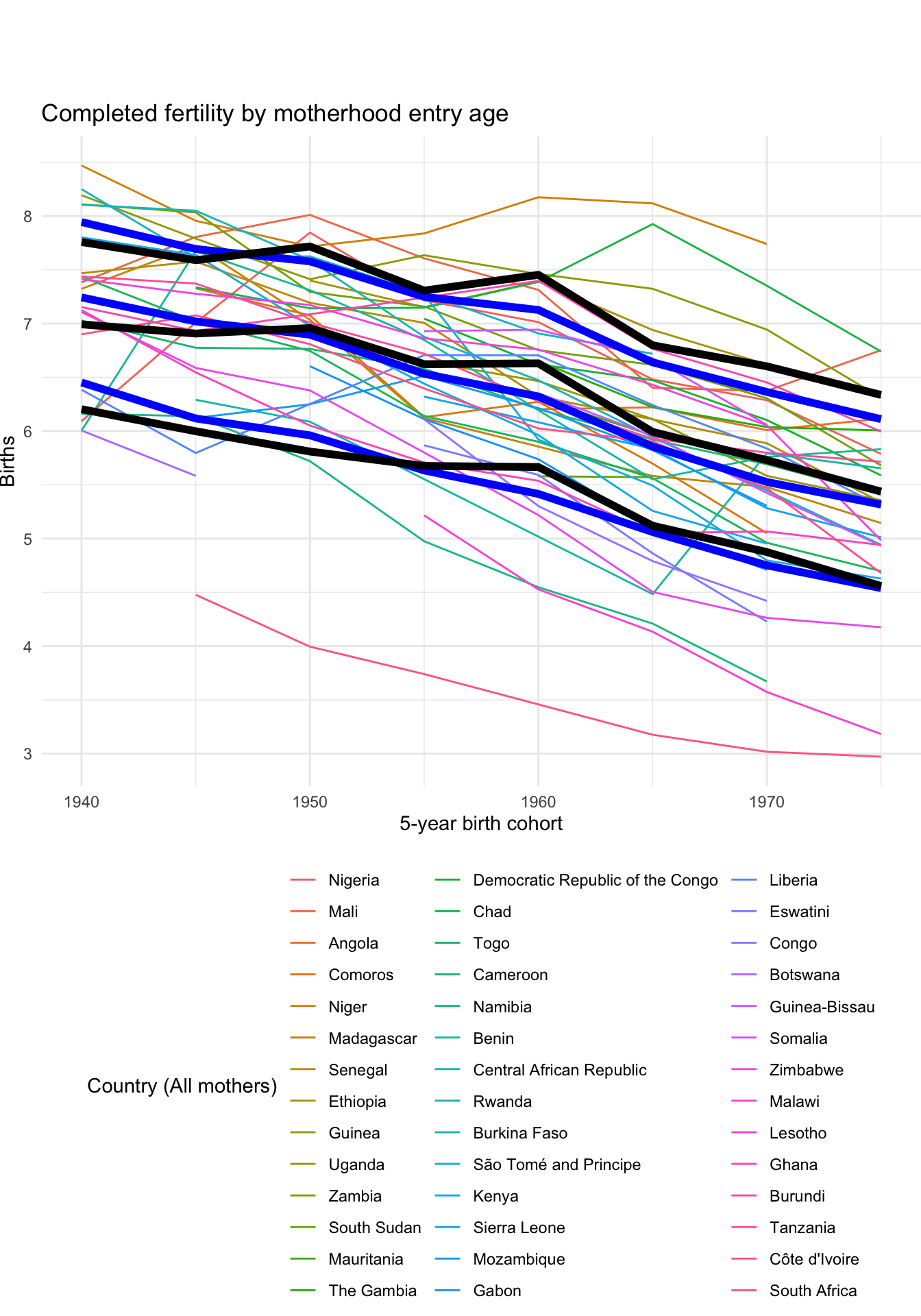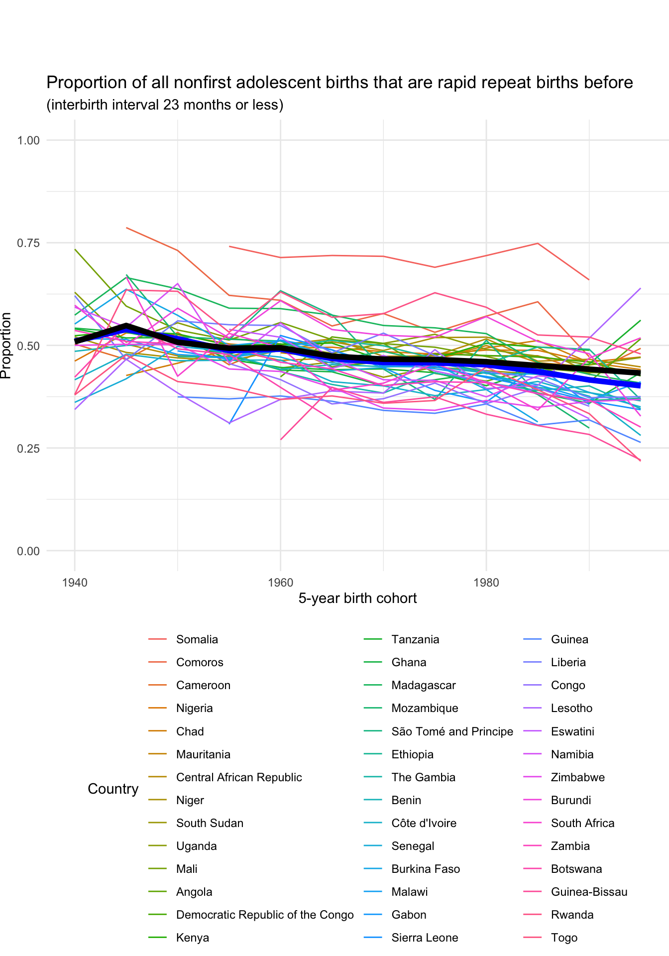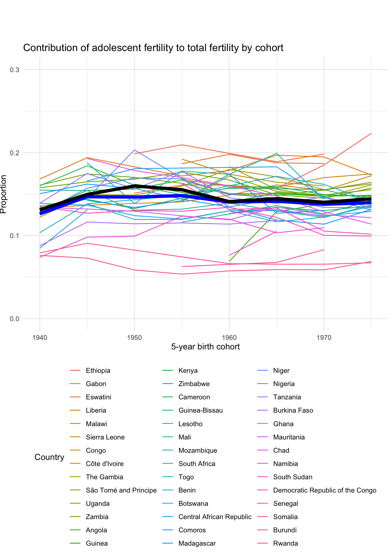 2.43.7 Contribution of adolescent fertility to total fertility by cohort