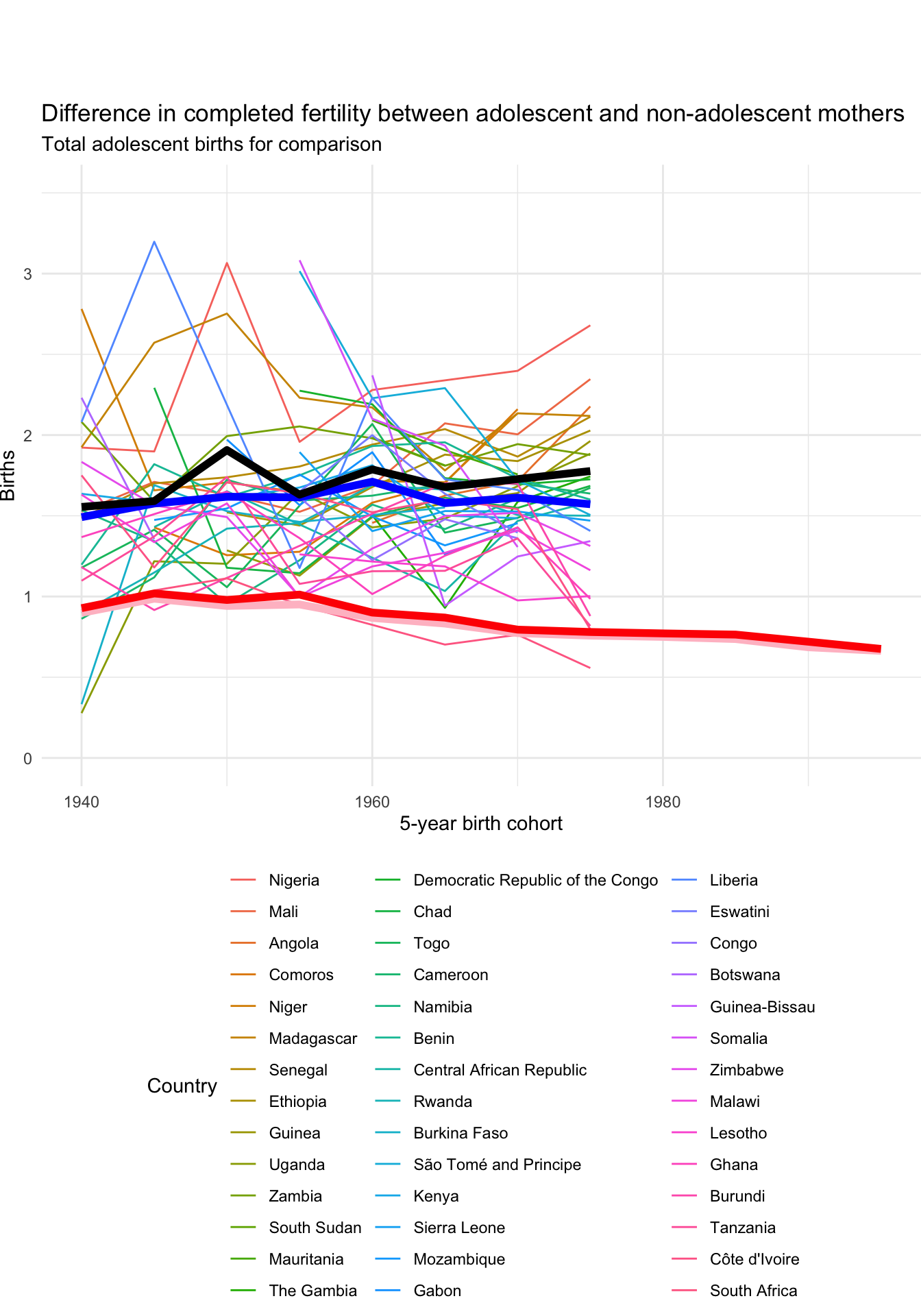 2.43.6 Difference in completed fertility between adolescent and non-adolescent mothers