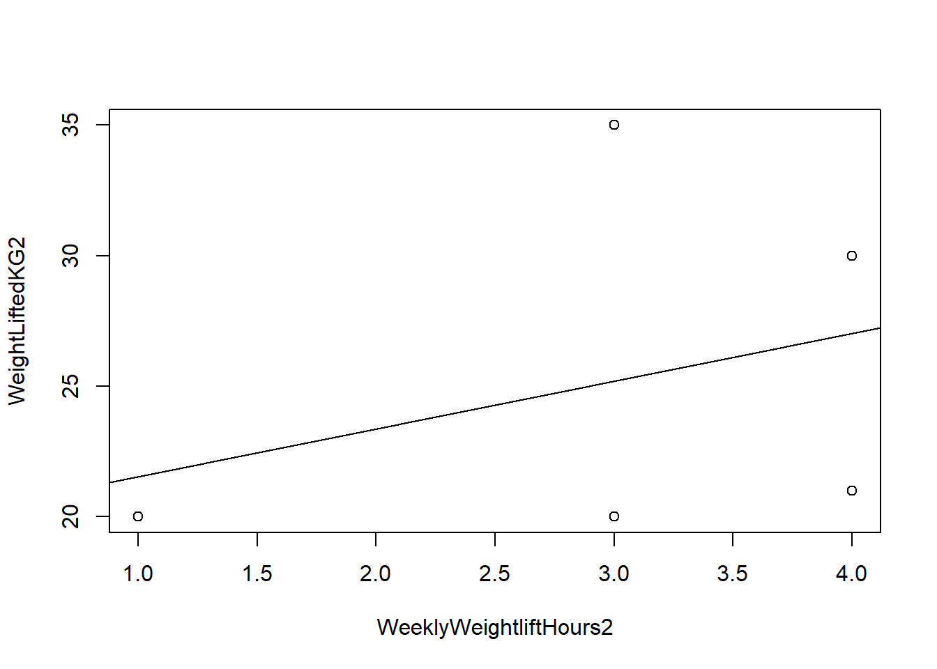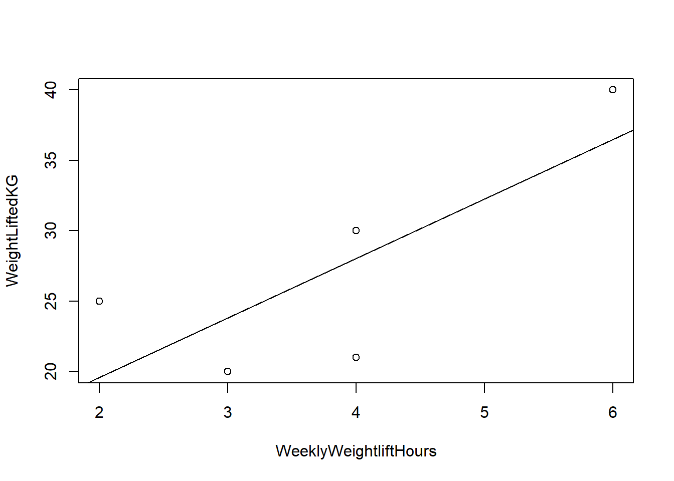 WeeklyWeightliftHoursis the number of hours per week the person spends weightlifting.WeightLiftedKGis how much weight the person could lift on the day of the survey.