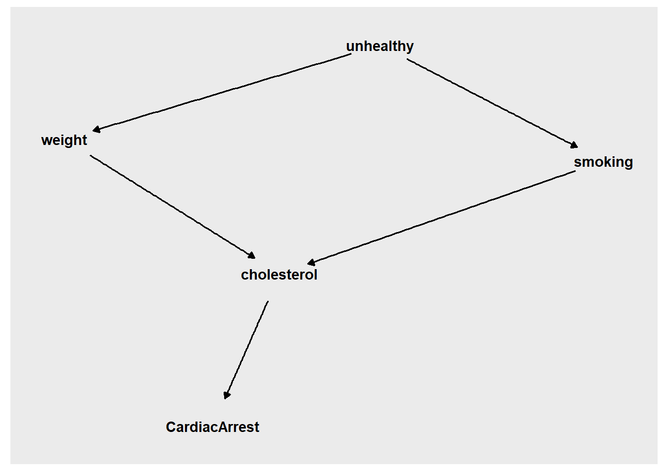 Task 20: In DAG #1, above, where CardiacArrest is our outcome of interest, which variables are colliders?
