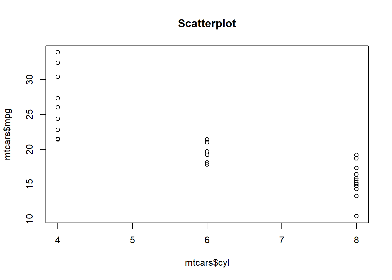 plot(mtcars$cyl,mtcars$mpg, main = "Scatterplot")