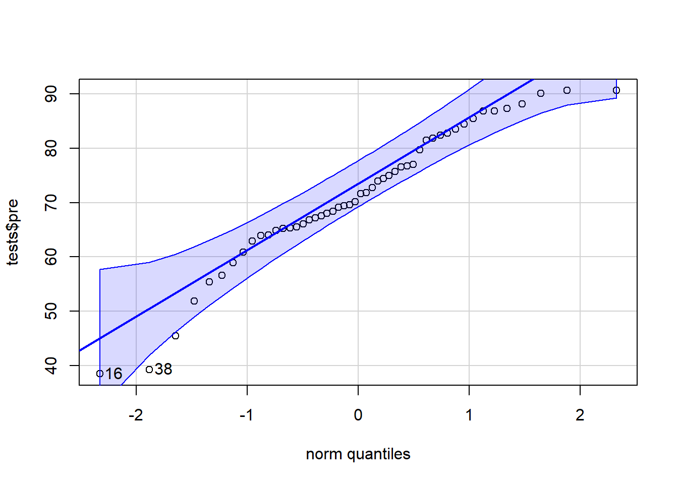 qqPlot(pre)sinceprealso exists in our data on its own as a column of data that is not inside of a dataset. To make a histogram of treatment and control groups from our blood pressure example, you can runqqPlot(treatment)andqqPlot(control), without using the datasetbpdataas part of the command, sincetreatmentandcontrolare also loaded on your computer as separate columns of data that are not associated with a dataset.↩︎Hypothesis testing: step-by-step, p-value, t-test for difference of two means - Statistics Help. Dr Nic’s Maths and Stats. Dec 5, 2011. YouTube. https://www.youtube.com/watch?v=0zZYBALbZgg.↩︎