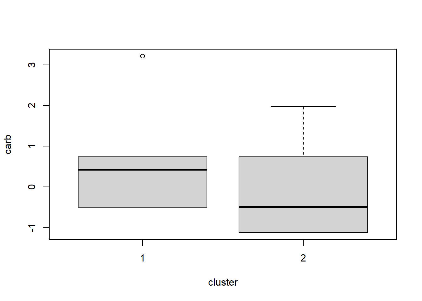 boxplot(carb ~ cluster, data = df)
