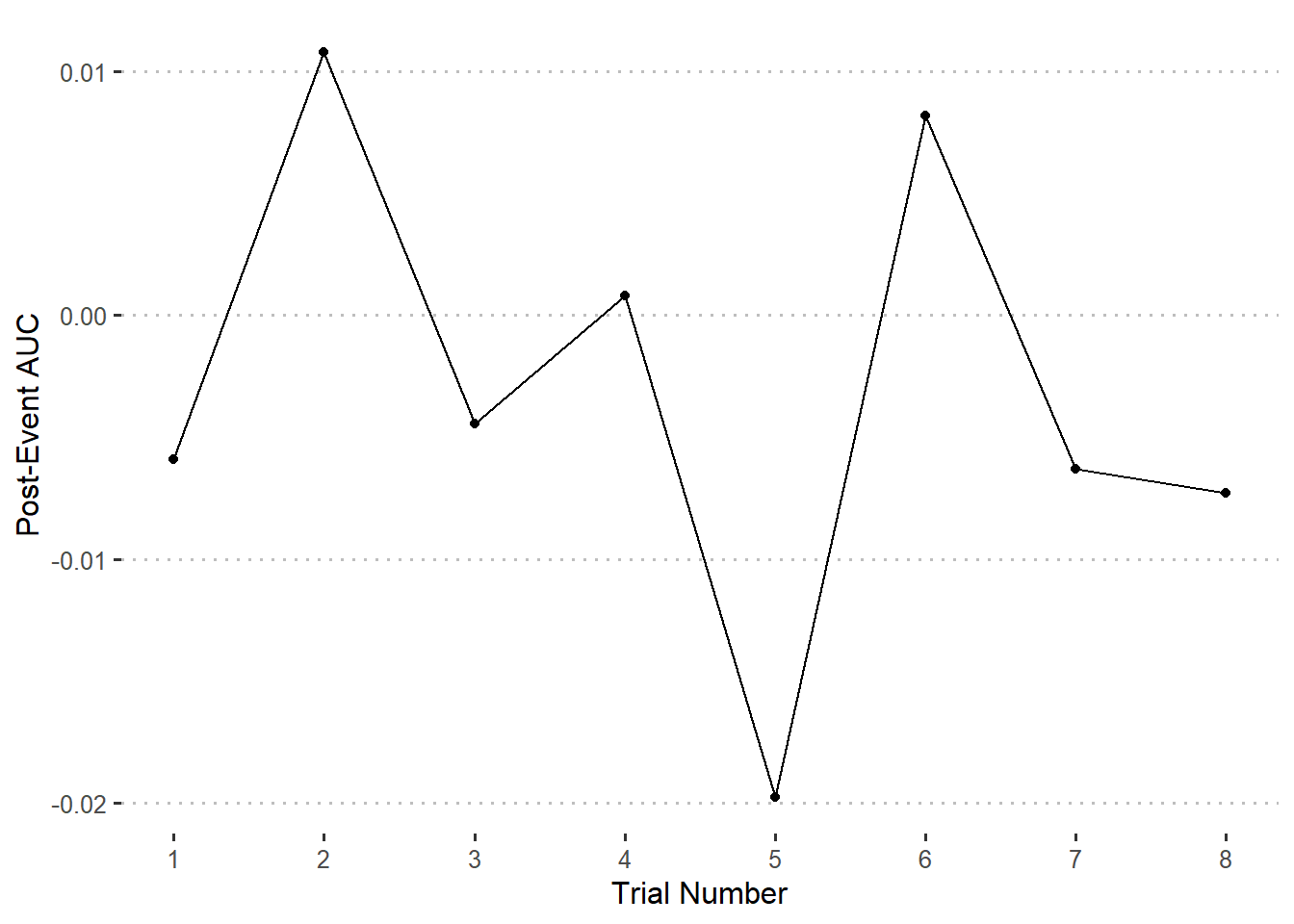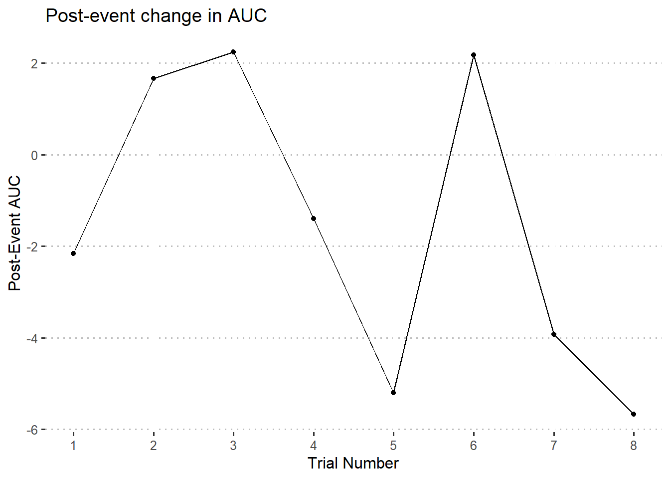 Compare the post-event AUC for trials 1-8