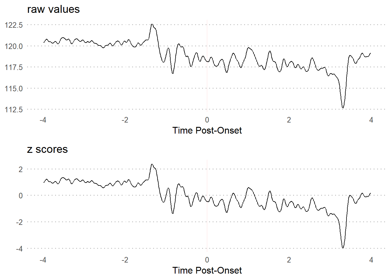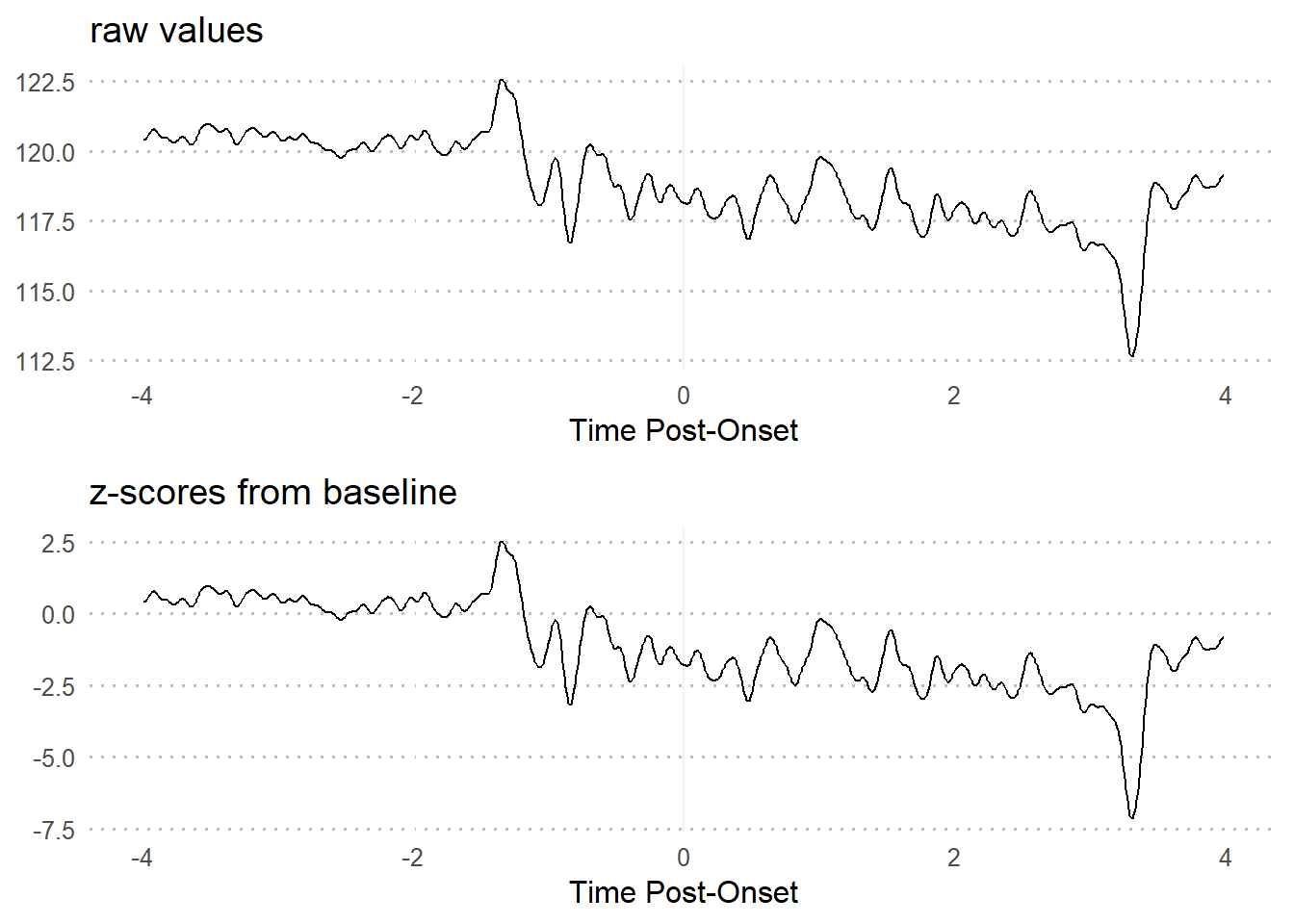 - The baseline period is typically assumed to be a “resting” period prior to exposure to the experimental manipulation. This means that using standardization methods (particularly z-scores) also takes baseline deviations into consideration.