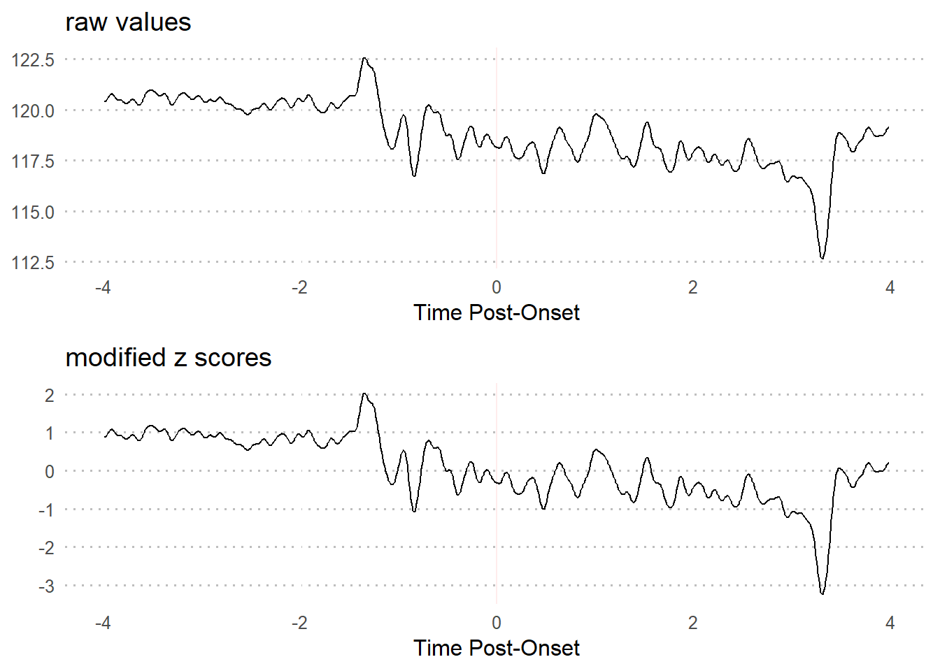 baseline.vals <- df$Trial8[df$Time >= -4 & df$Time <= 0] # extract baseline values