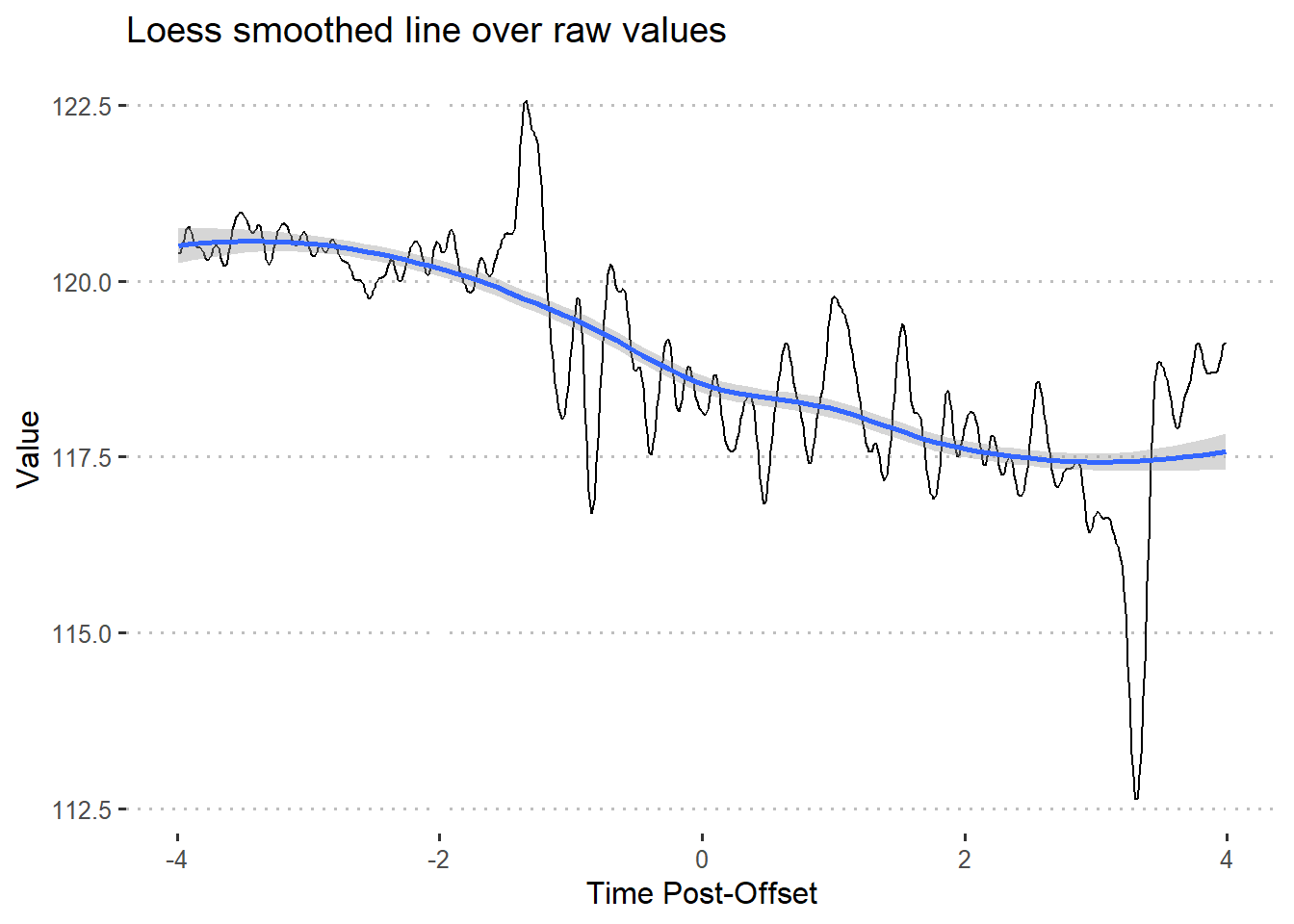 As you can see by the previous graphs, the recorded data looks sharp when graphed across time points. While this should be used for the data extraction and analysis phase, we do not have this limitation when graphing.