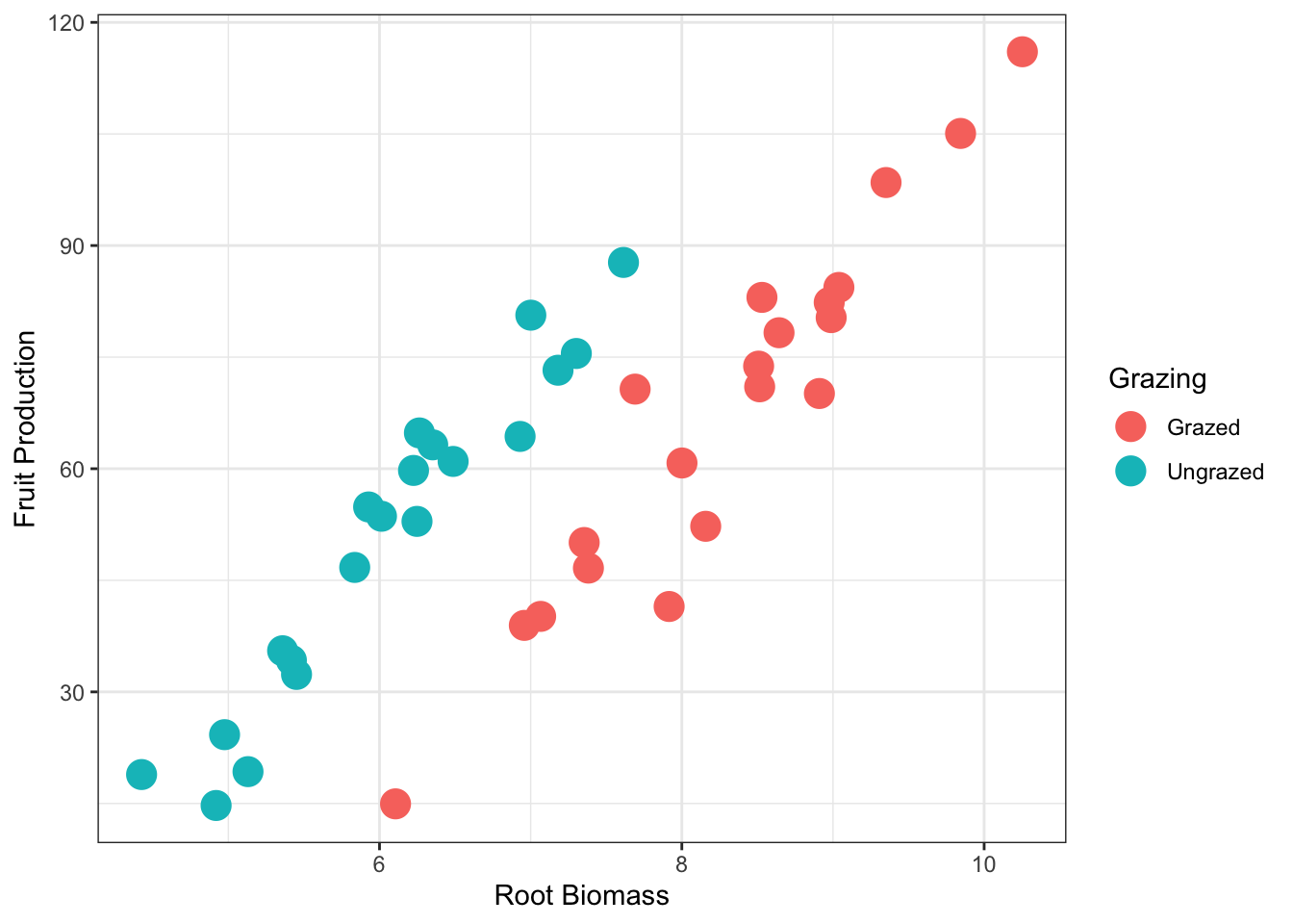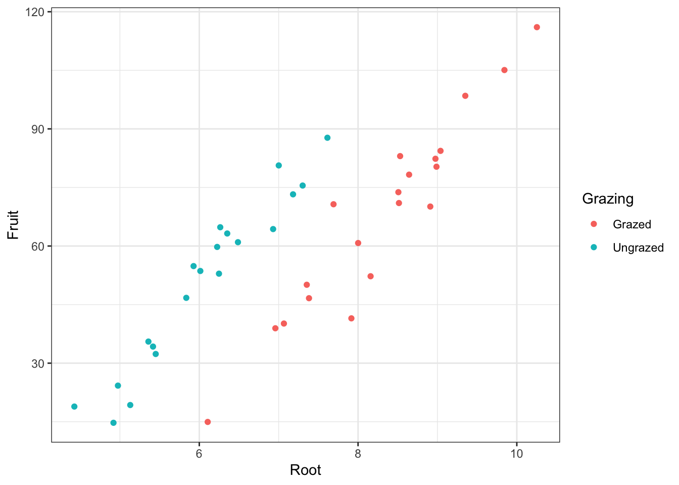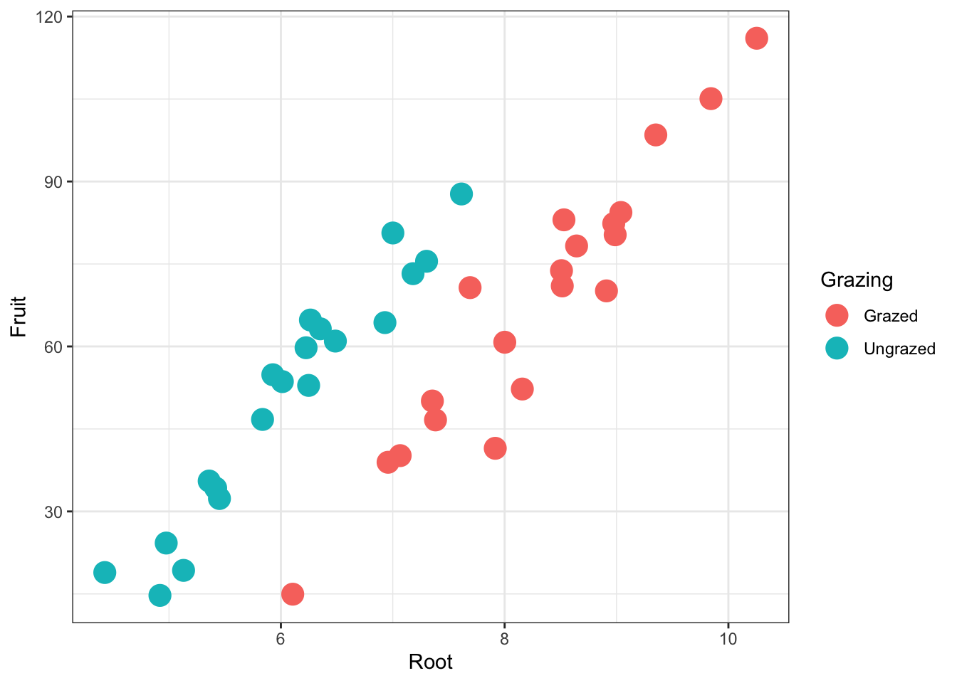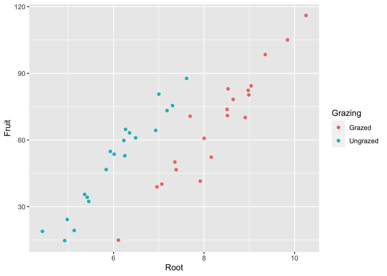 colour=Grazing)) + #colour: for the two levels of the categorical variable, Grazing