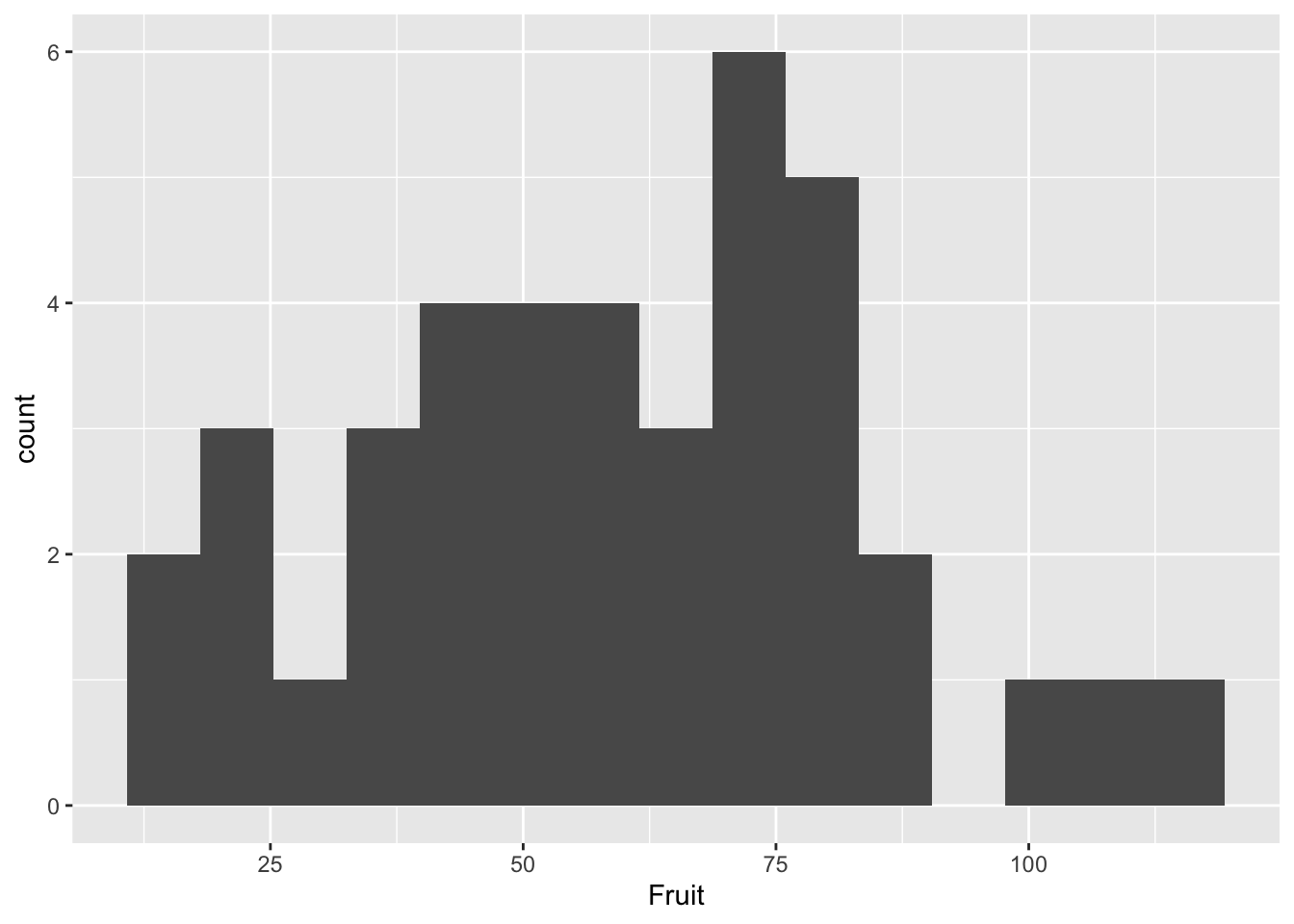 ## $ Fruit <dbl> 59.77, 60.98, 14.73, 19.28, 34.25, 35.53, 87.73, 63.21, 24.25,…