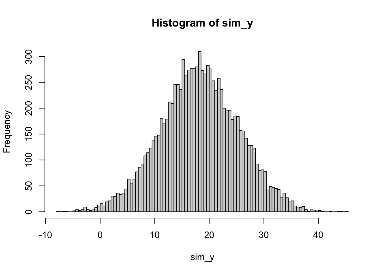 print(y) [1] 16.12064 18.55093 15.49311 22.78584 18.98852 15.53859 19.46229 20.21497