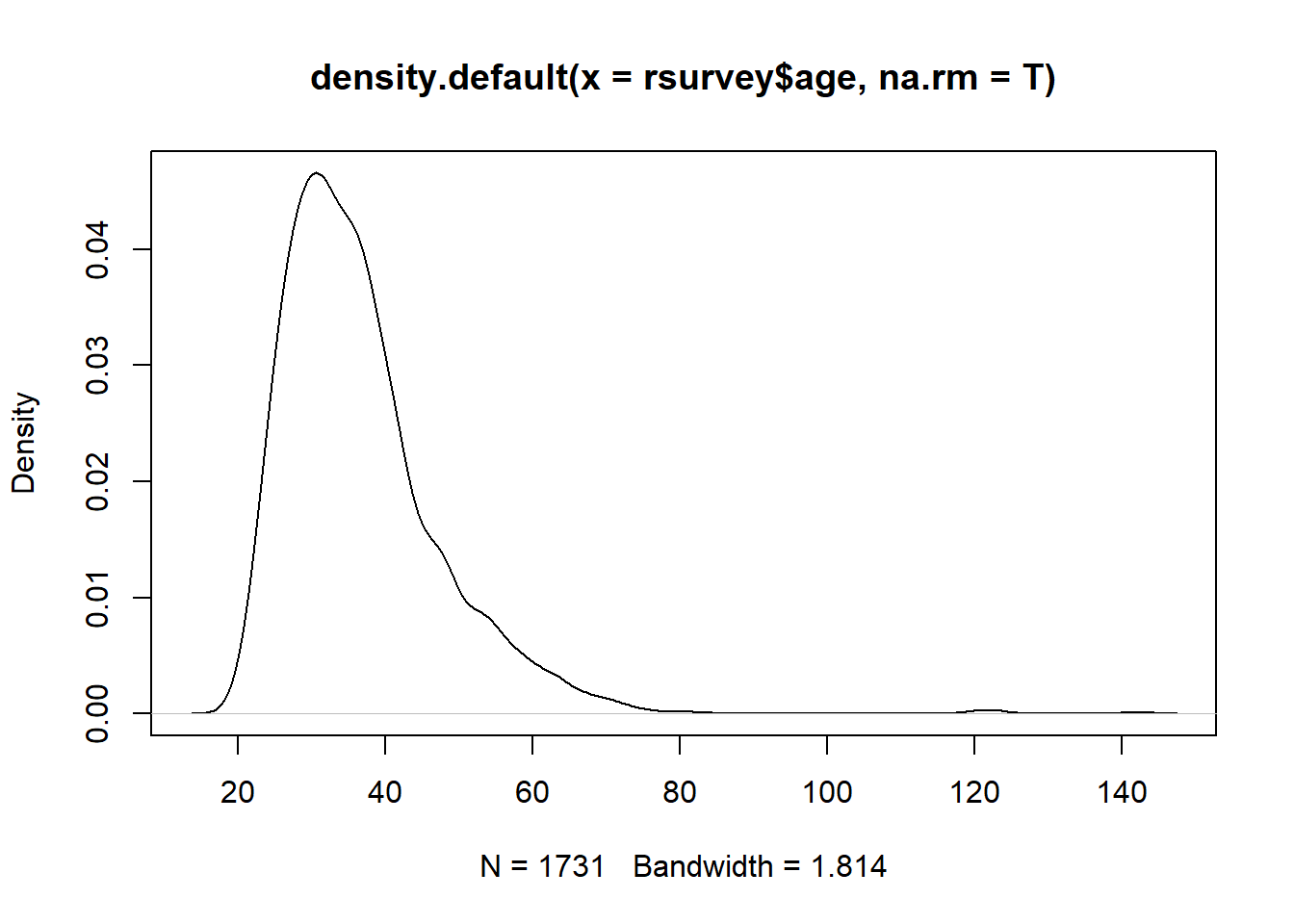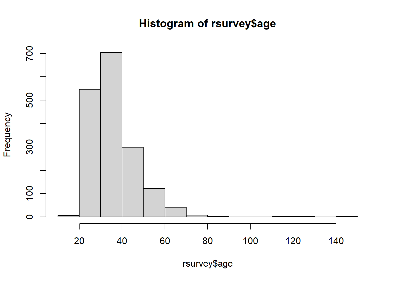 This will remove all rows with missing data in the age variable. Compared “rsurvey” to “missing_dropped_some” and you will see less observations.