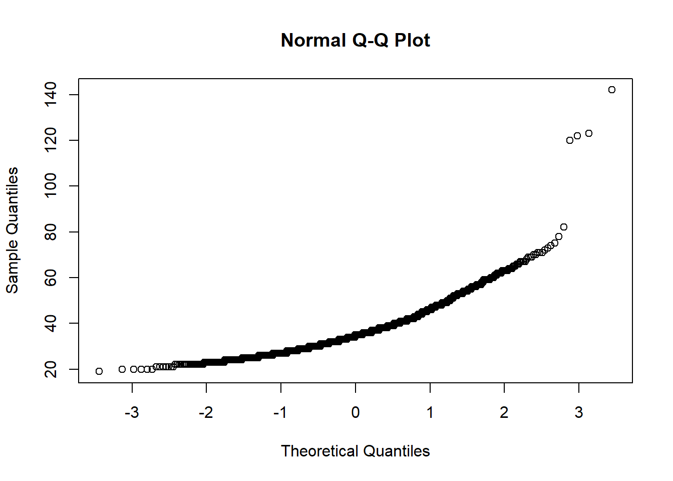 The above p-value is significant at less than 0.05, signifying non-normality.