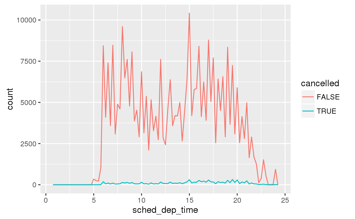 Use what you’ve learned to improve the visualisation of the departure times of cancelled vs. non-cancelled flights.