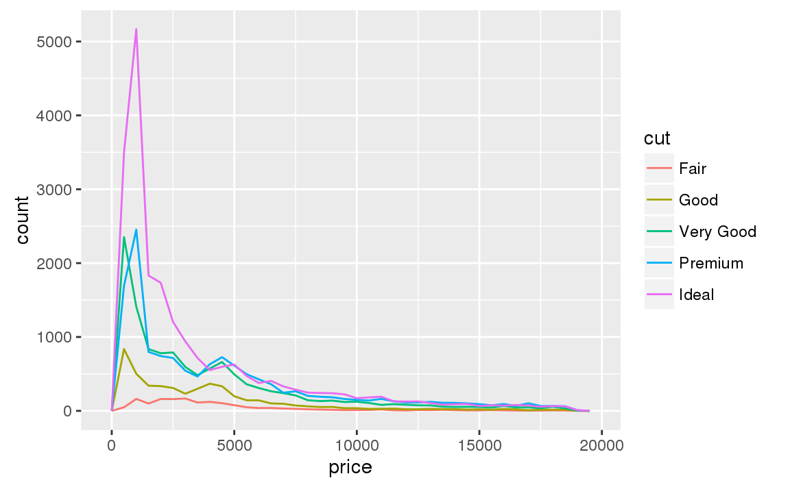 geom_lv()to display the distribution of price vs cut. What do you learn? How do you interpret the plots?Compare and contrast