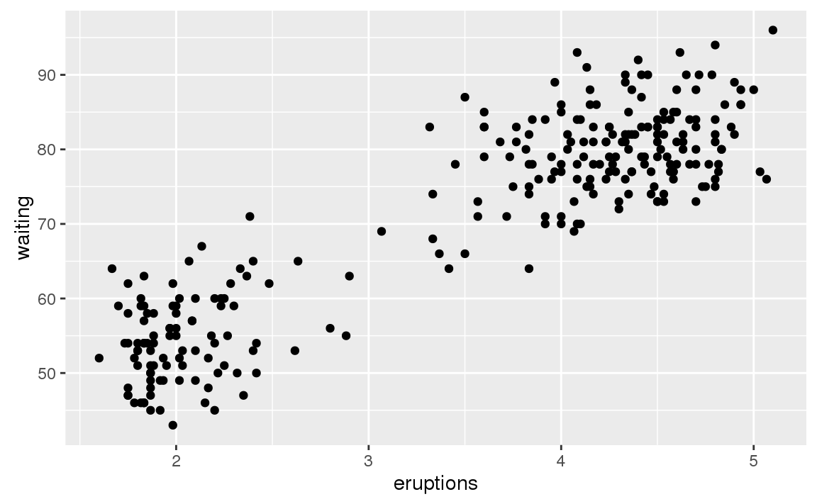 geom_point(mapping = aes(x = eruptions, y = waiting))