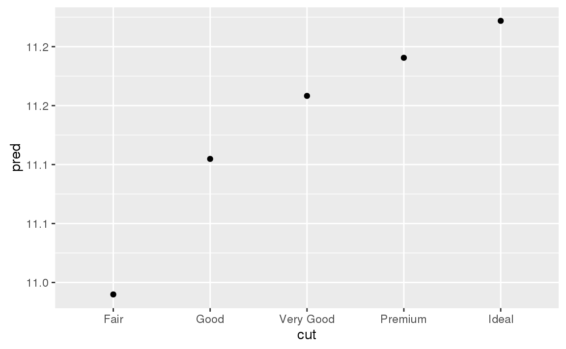 If the model needs variables that you haven’t explicitly supplied, data_grid() will automatically fill them in with “typical” value. For continuous variables, it uses the median, and categorical variables it uses the most common value (or values, if there’s a tie).