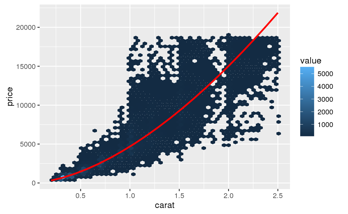 If you’re experimenting with many models and many visualisations, it’s a good idea to bundle the creation of variables up into a function so there’s no chance of accidentally applying a different transformation in different places. For example, we could write: