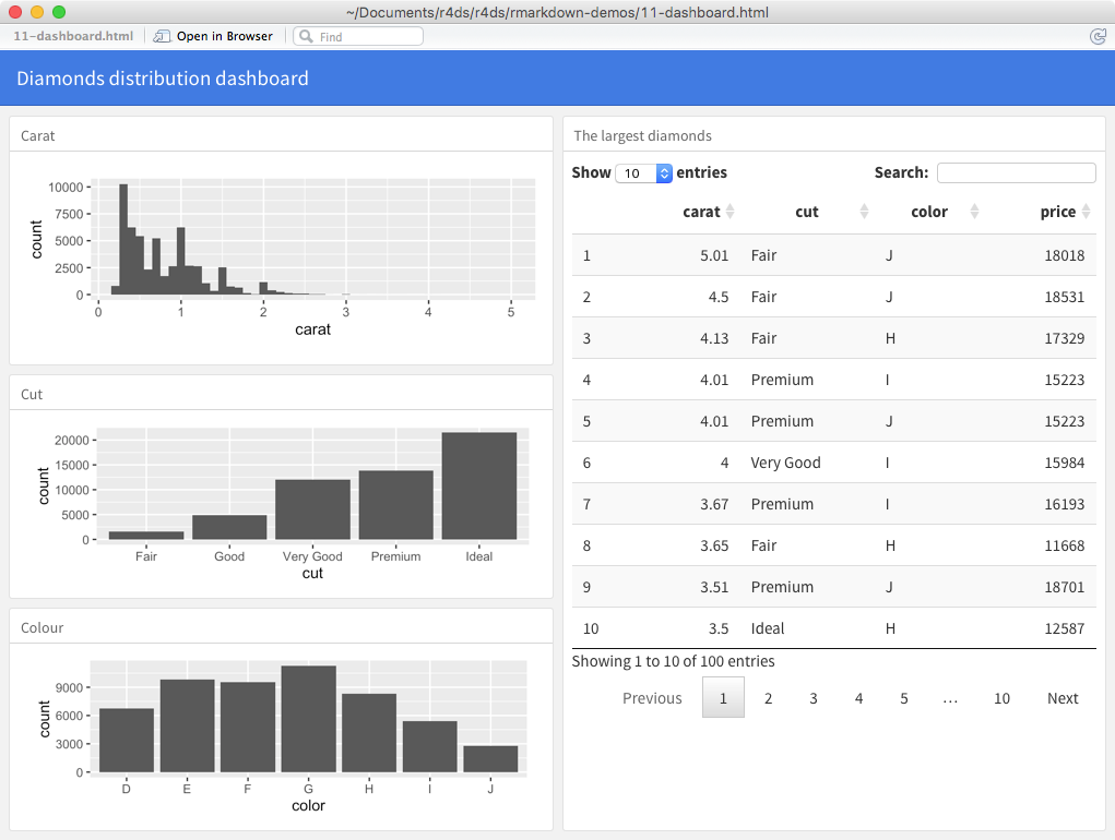 To learn more about htmlwidgets and see a more complete list of packages that provide them visit http://www.htmlwidgets.org/.