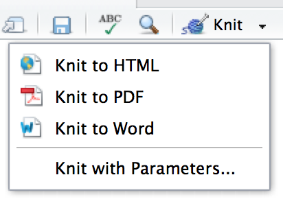 RStudio’s knit button renders a file to the first format listed in its output field. You can render to additional formats by clicking the dropdown menu beside the knit button.