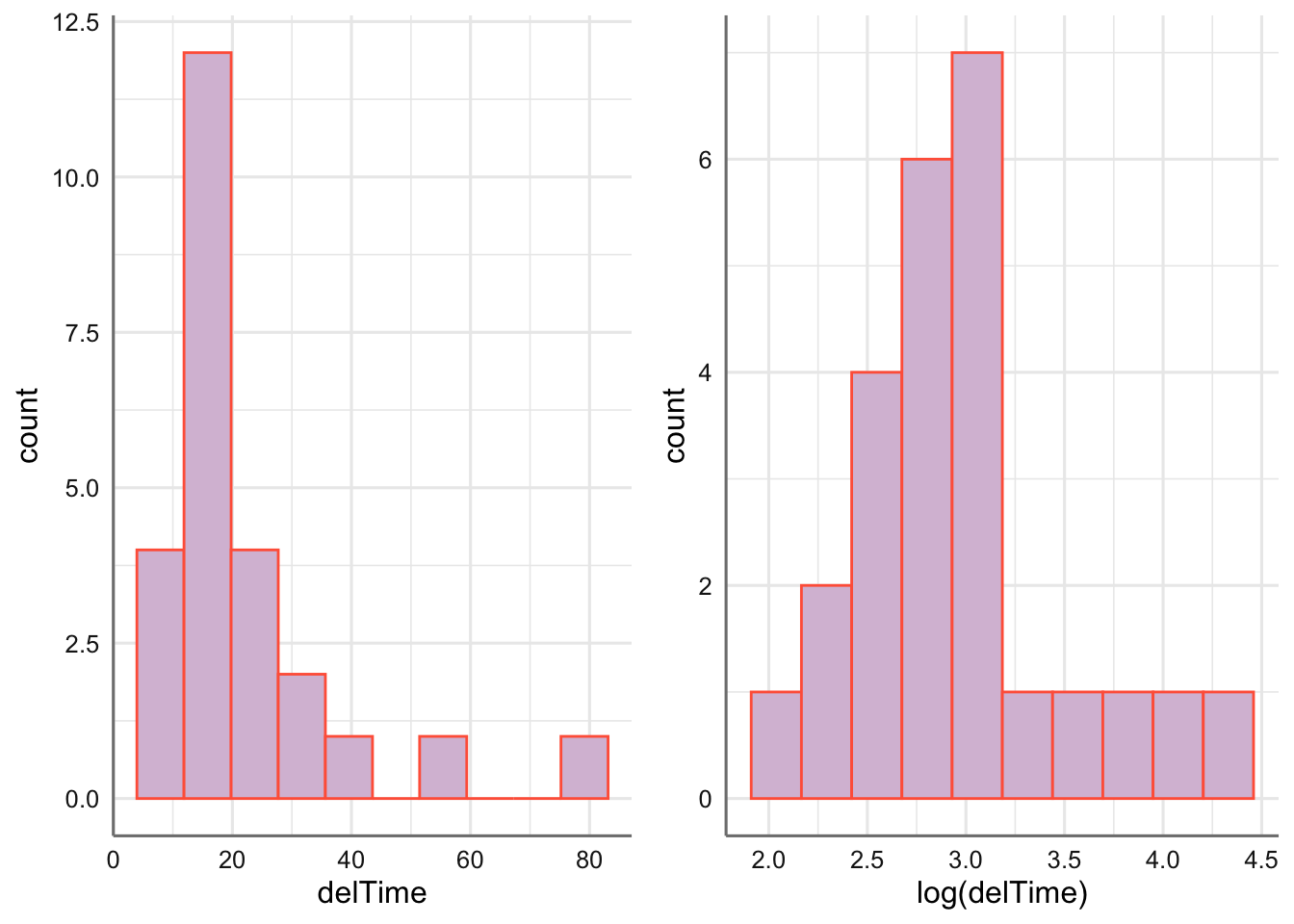 g1=ggplot(delivery,aes(delTime))+