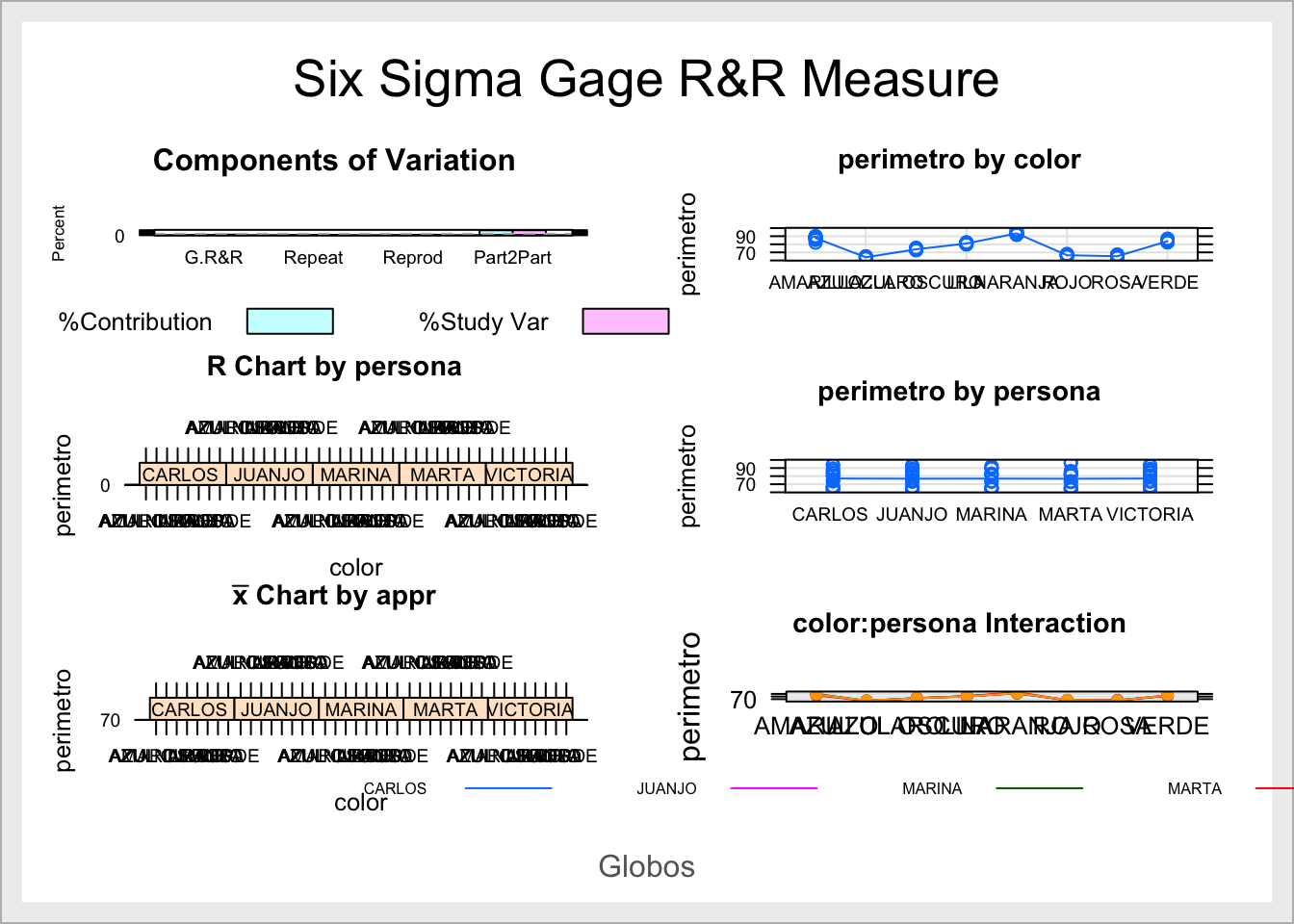main = "Six Sigma Gage R&R Measure", sub = "Globos")## Complete model (with interaction):