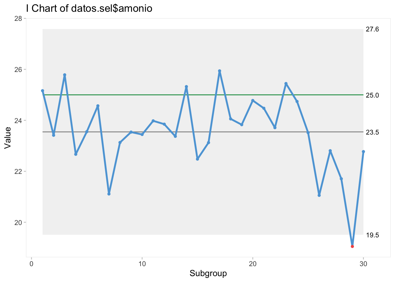 qic(datos.sel$amonio, chart = 'i',target=25)