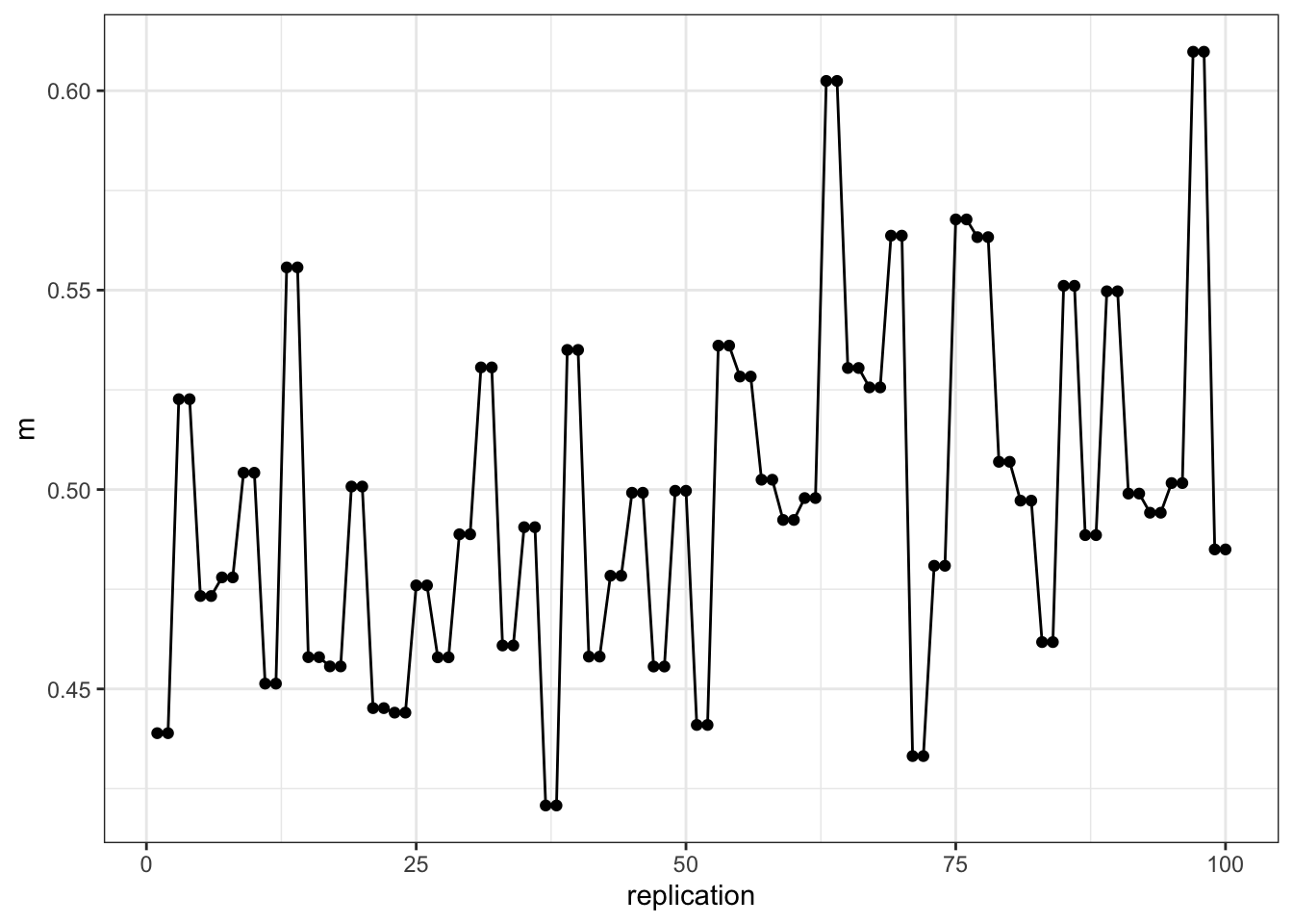 ggplot(mm1.data,aes(x=replication,y=m))+