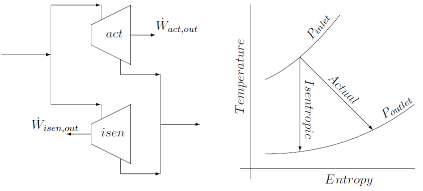 \(\eta_{compressor}=\frac{\dot W_{isentropic}}{\dot W_{actual}}\) The