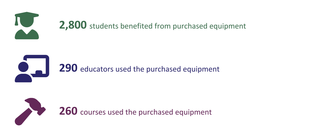 Projects that use ATE funding to purchase instruments or equipment are expected to revise their academic programming to maximize the value of the items for student learning. In 2020, 2,800 students used instruments and equipment.