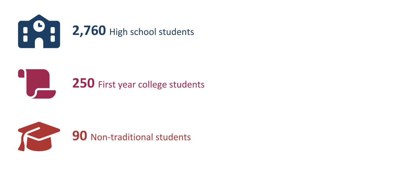 Community colleges enroll disproportionate numbers of students who are economically disadvantaged and from underrepresented minority groups (Edgecombe, 2019). Programs that support students as they transition into college are an important means for enhancing academic persistence and completion among these and other students (Baber, 2018). The ATE program supports efforts to facilitate students’ transition into college and equip them with the skills they need to successfully navigate college. Such programs include—but are not limited to—summer bridge programs, college readiness workshops or classes, first-year programs, and support for nontraditional students.