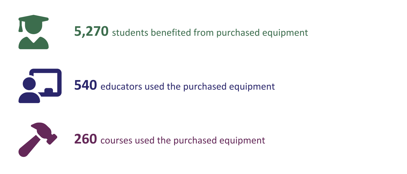 Projects that use ATE funding to purchase instruments or equipment are expected to revise their academic programming to maximize the value of the items for student learning. In 2023, 5,270 students used instruments and equipment.