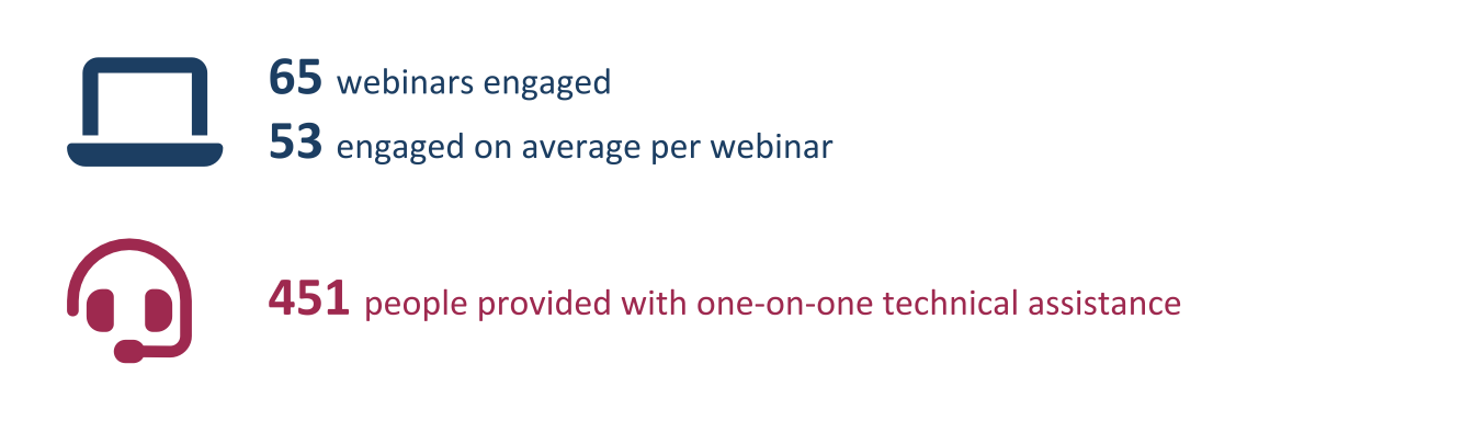All survey respondents were invited to report on the ways in which their projects served and supported the ATE program, even if that was not the main focus of their work. Twelve additional projects identified ways that their projects served the ATE community. Twelve projects developed and disseminated resource materials. Eleven projects held in-person workshops. Ten projects offered webinars. And 13 projects provided technical assistance to individuals.