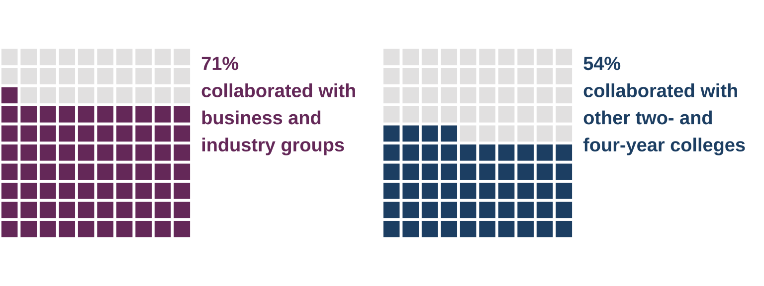 ATE projects most frequently collaborated with business and industry groups and other colleges and universities.