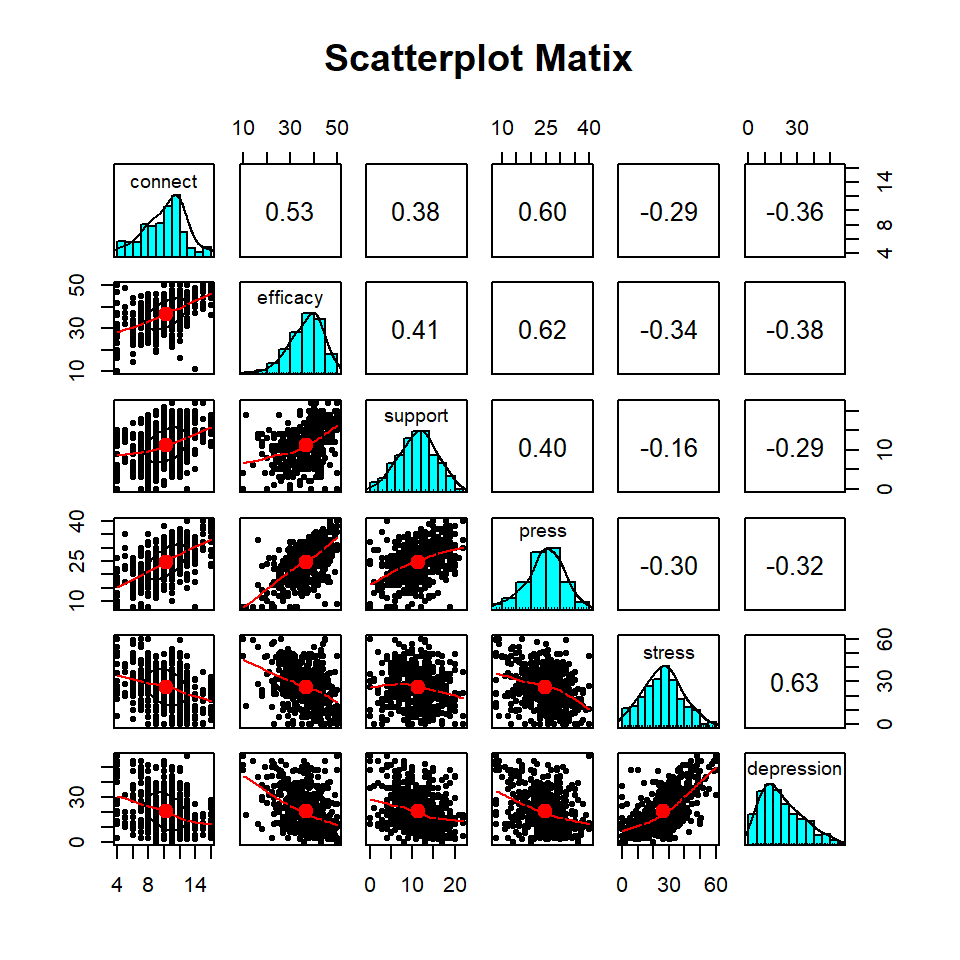 colnames(scores) <- c("connect", "efficacy", "support", "press", "stress", "depression")