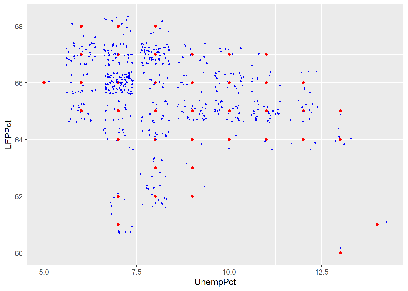 mutate(LFPPct = round(LFPPct))The scatter plot with the rounded data would look like this: