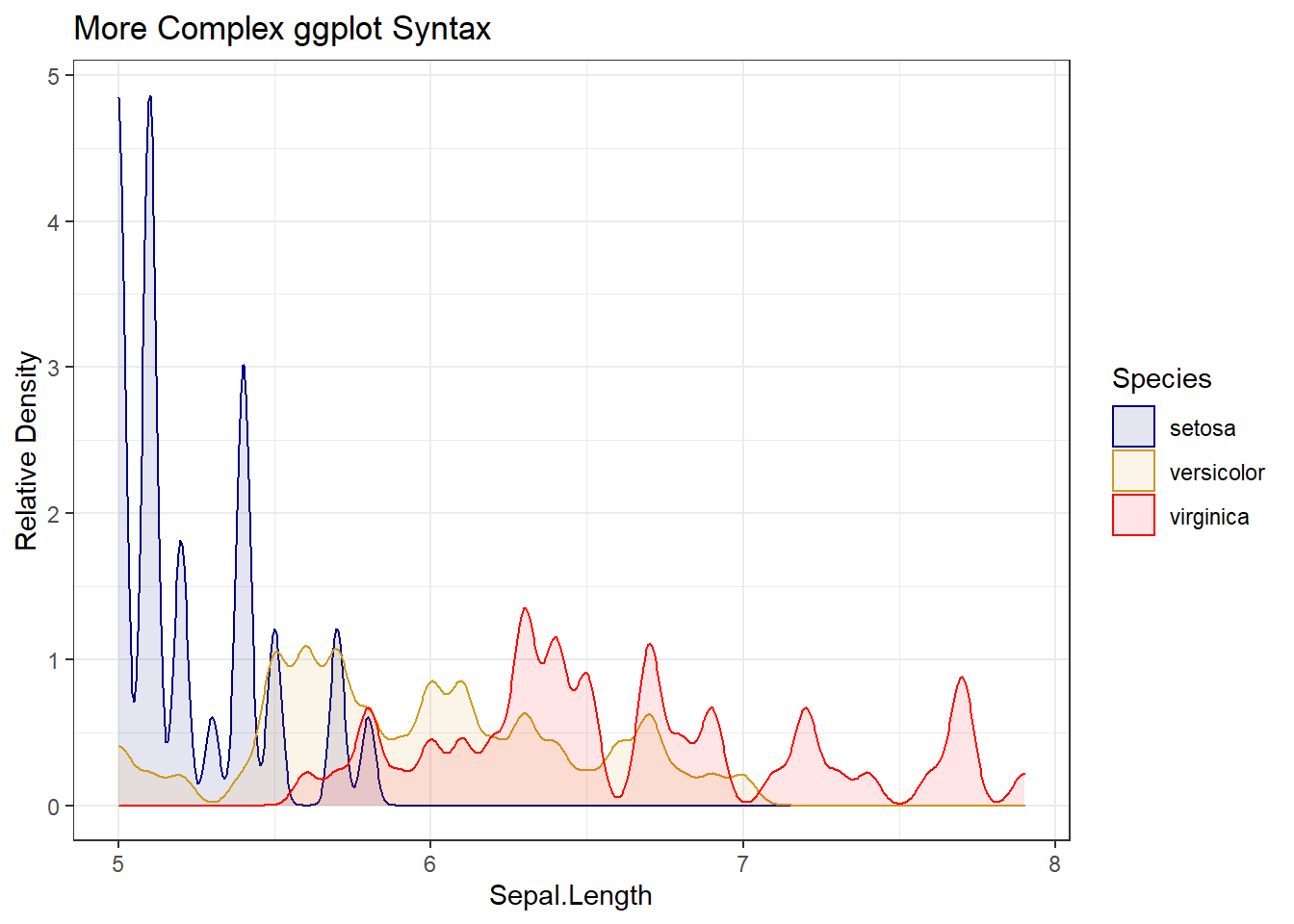aes(x=Sepal.Length, colour=Species, group=Species, fill=Species)) +