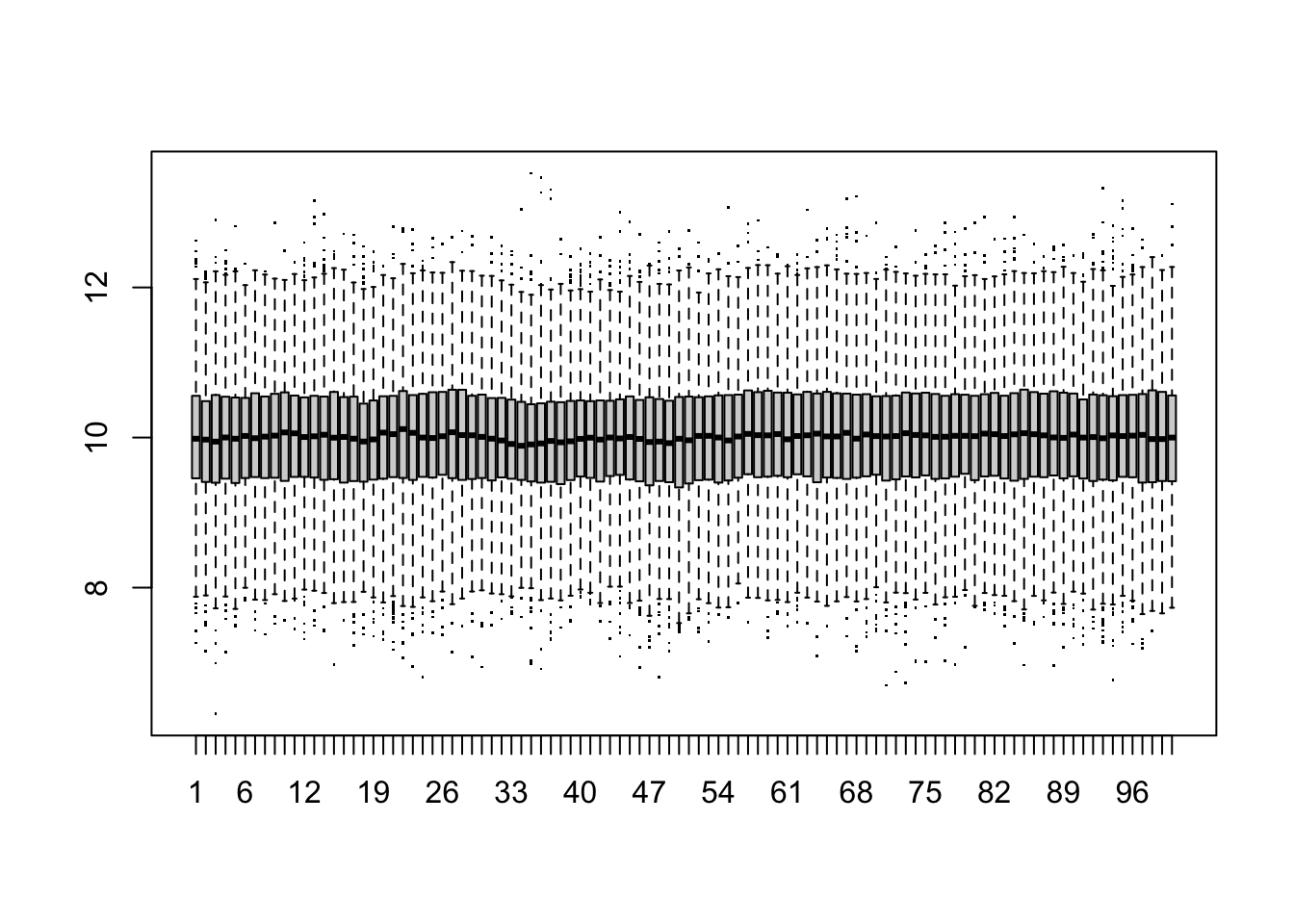 Proces stochastyczny jest stacjonarny w sensie ścisłym, gdy dwa wektory zmiennych losowych \(\left(Y_t, Y_{t+1}, ... Y_{t+r}\right)\) i \(\left(Y_{t+s}, Y_{t+s+1}, ... Y_{t+s+r}\right)\) mają taki sam rozkład dla dowolnych wartości \(t\), \(r\) i \(s\).