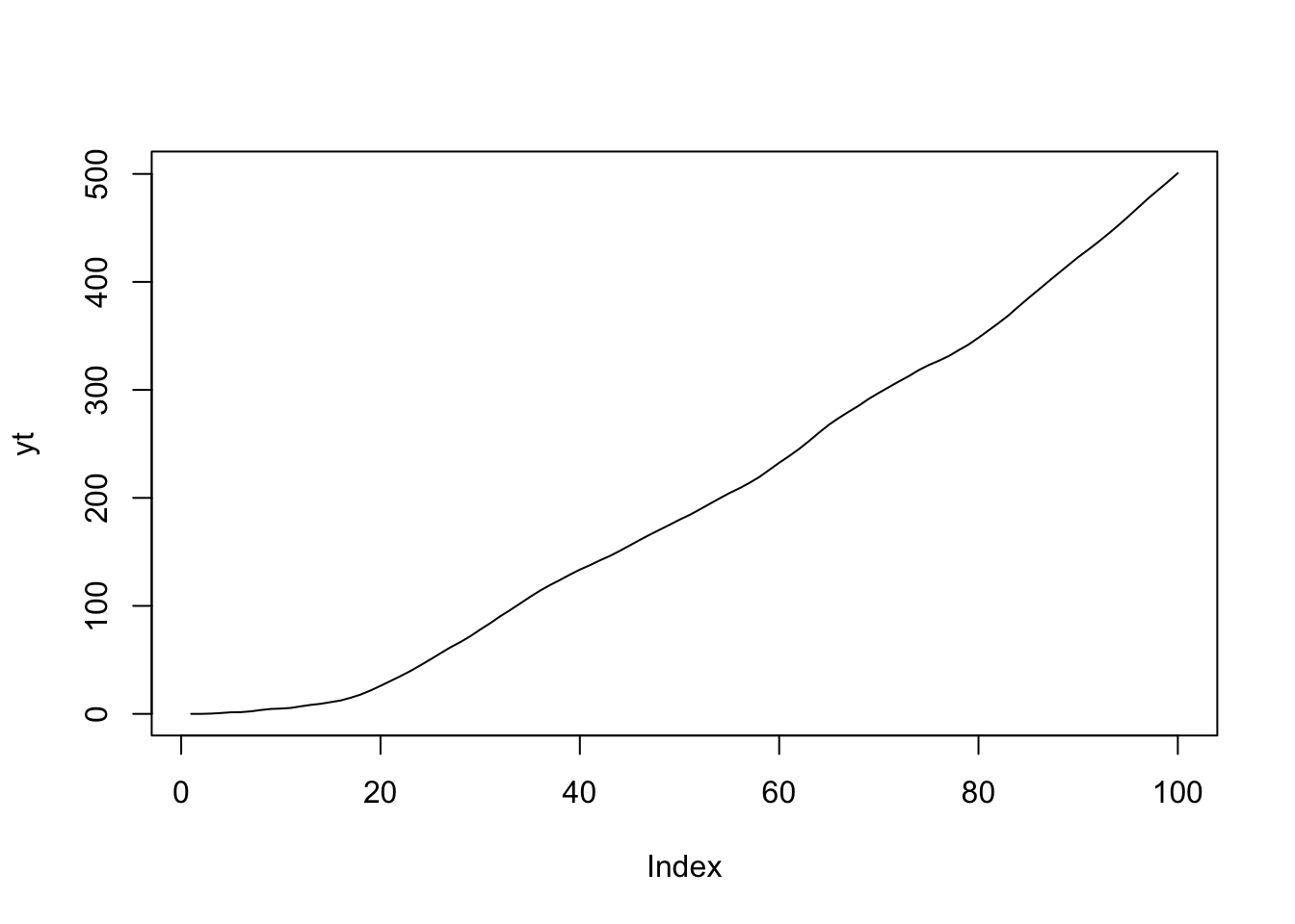 yt[t] <- alpha + phi*yt[t-1] + rnorm(1, 0, sigma_eps)