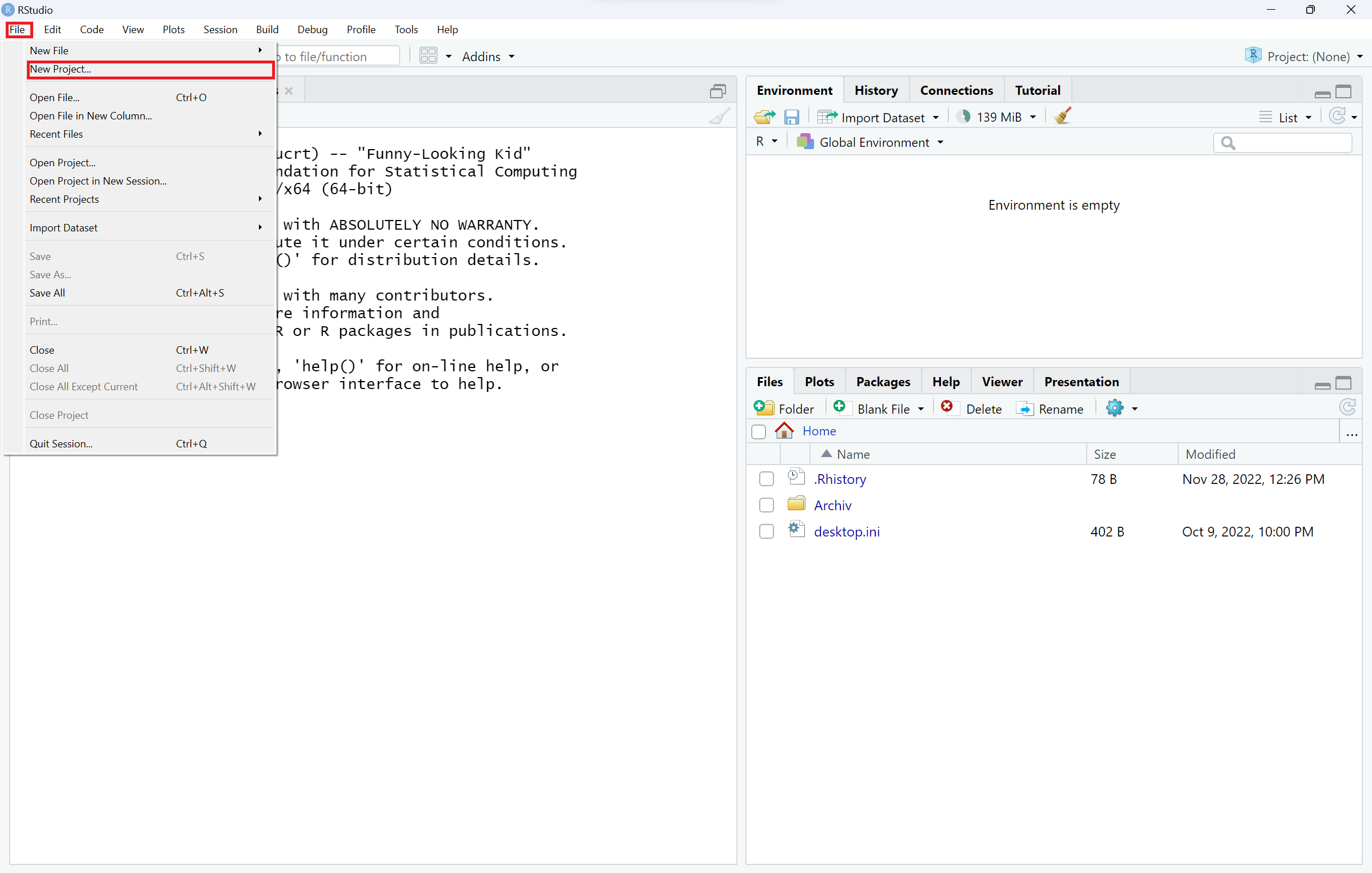 Um ein Projekt in RStudio zu erstellen, folge diesen Schritten: