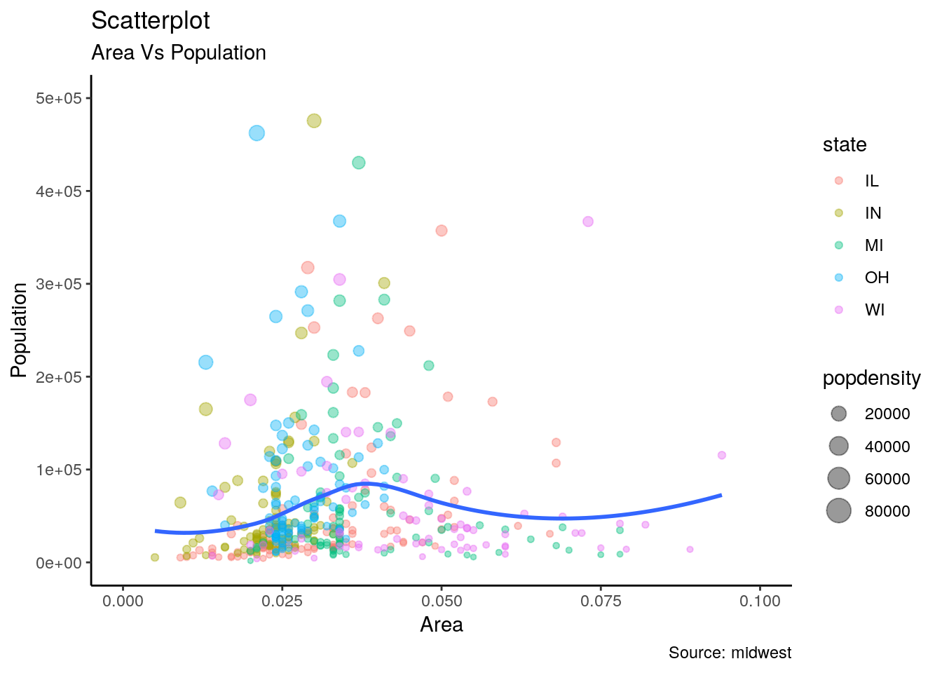 - Map x = area and y = poptotal