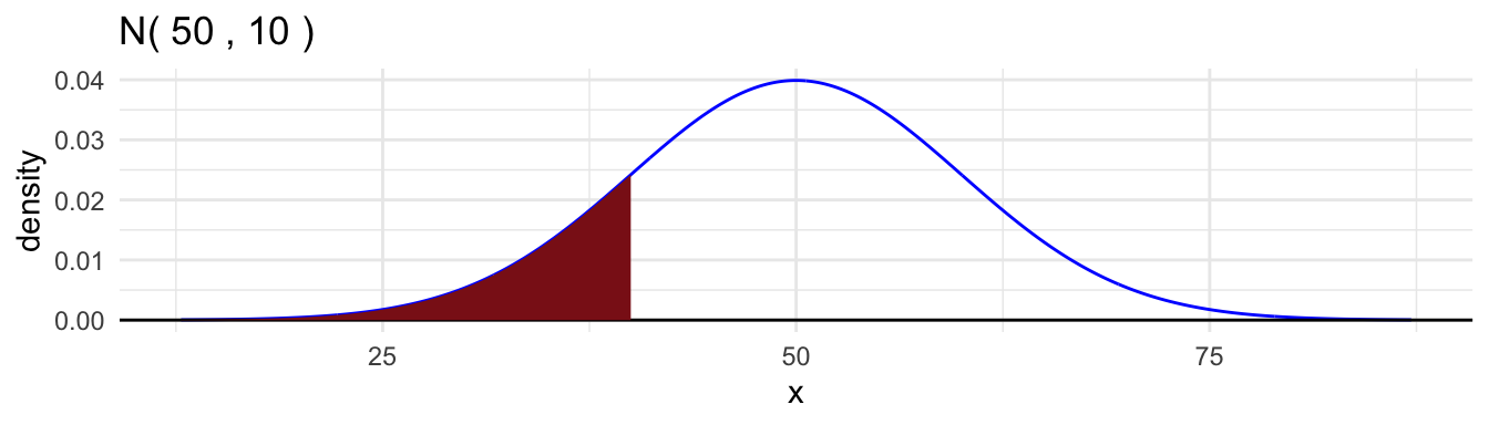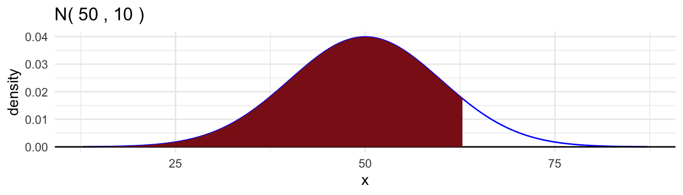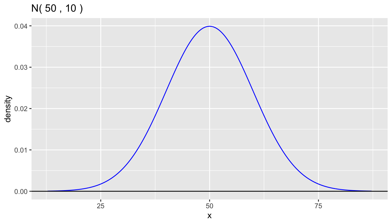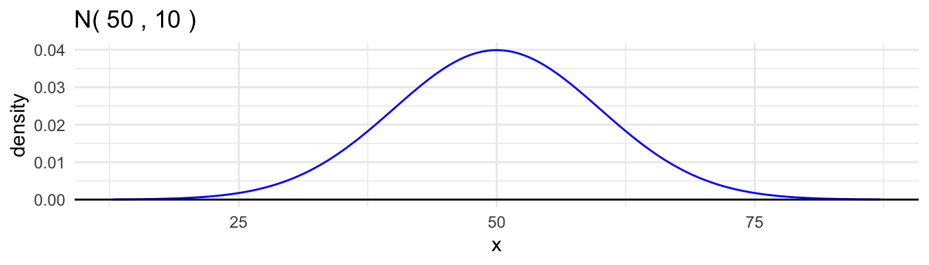 Here are examples for the \(\text{Normal}(50, 10^2)\) distribution.