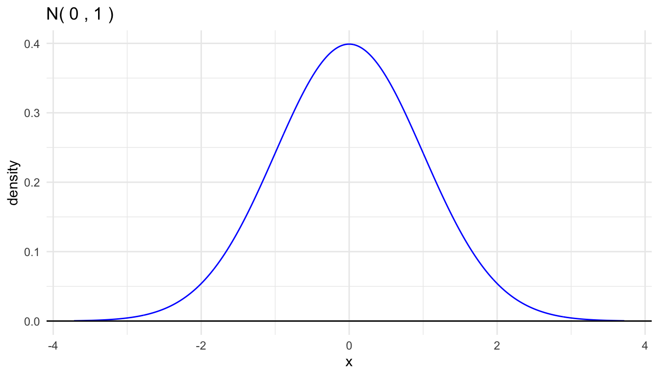 We conventionally use the symbol \(Z\) for a standard normal random variable. \[ Z \sim \text{Normal(0,1)} \]