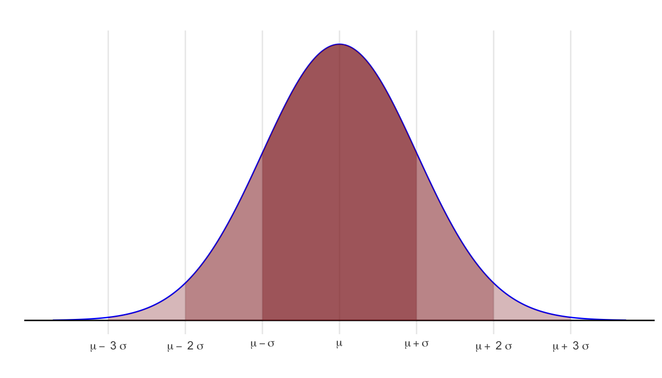 - The area within three standard deviations of the mean (between \(\mu - 3\sigma\) and \(\mu + 3\sigma\)) is approximately 99.7%.