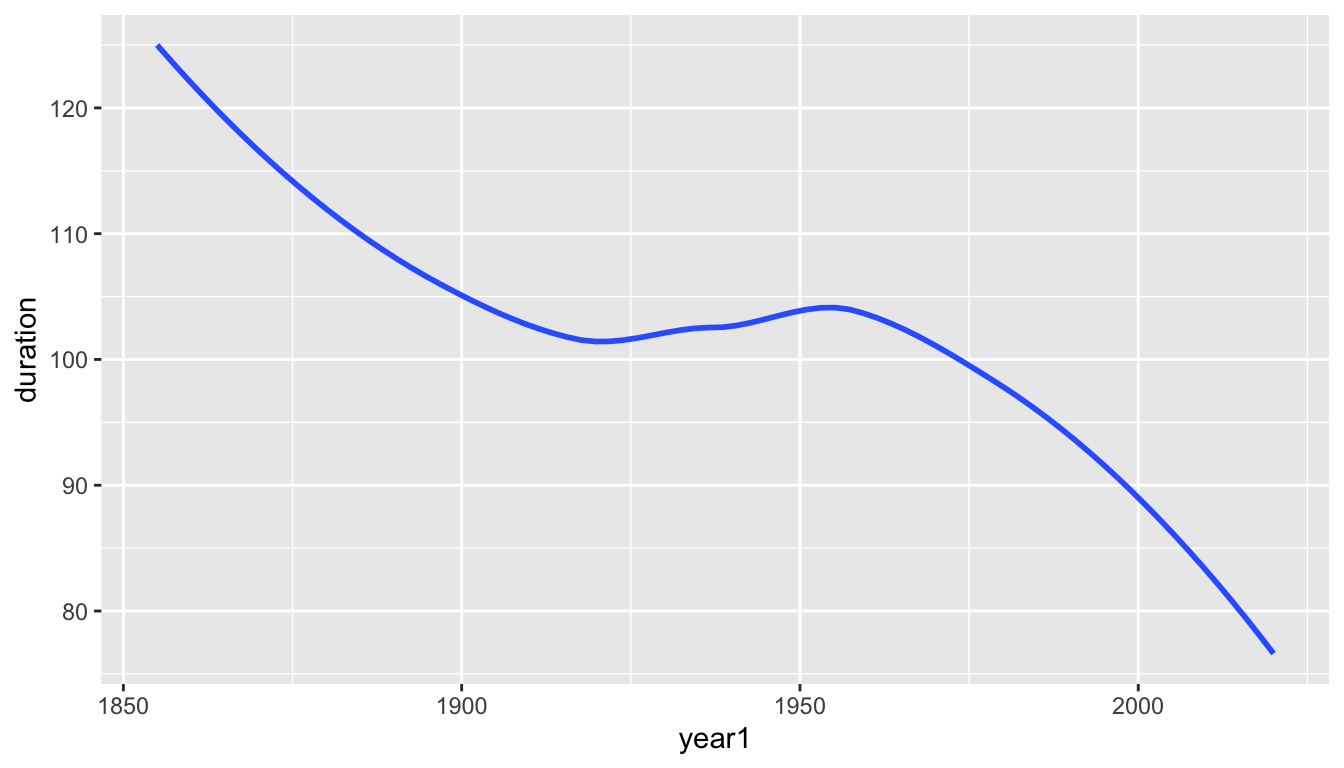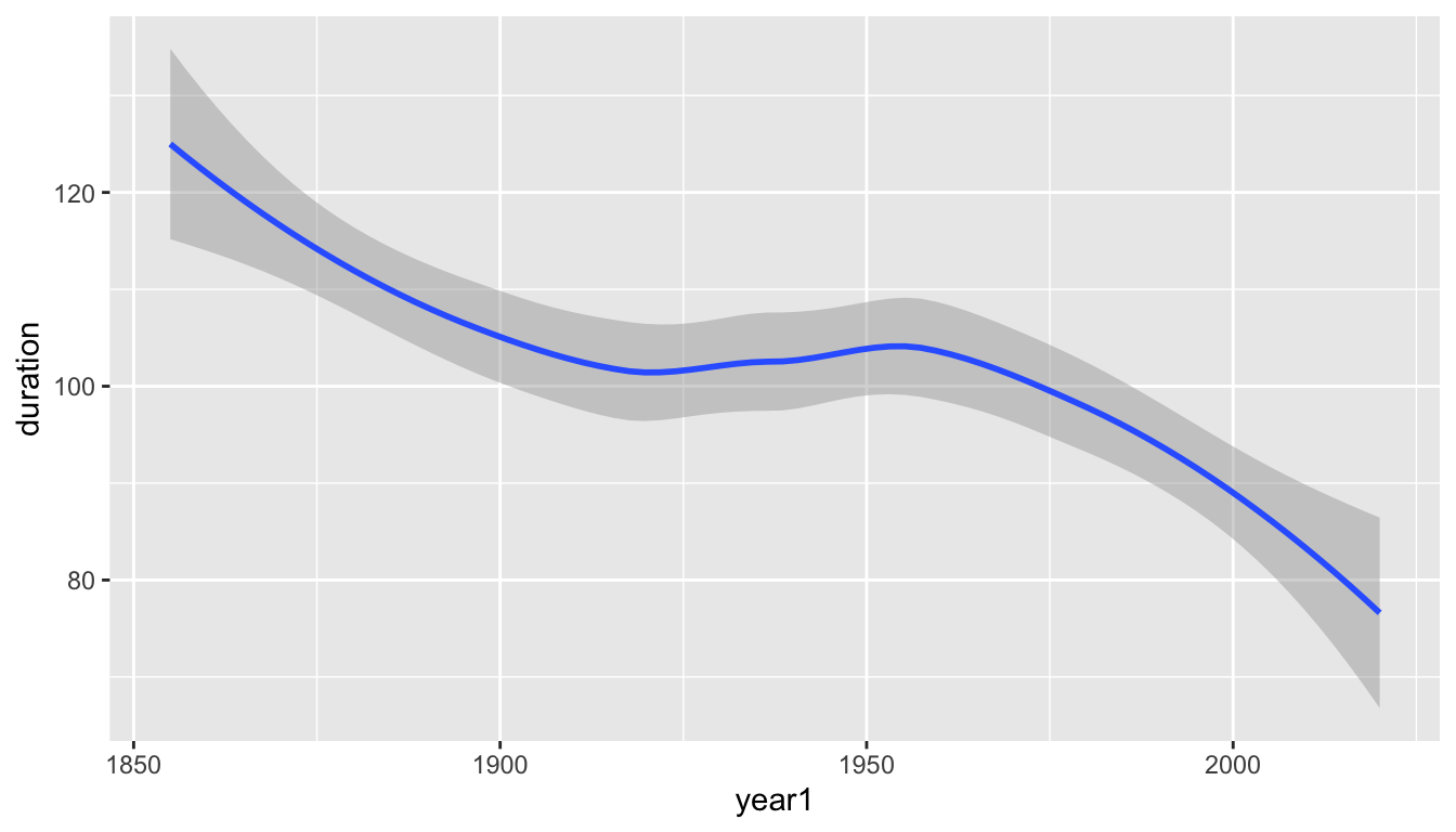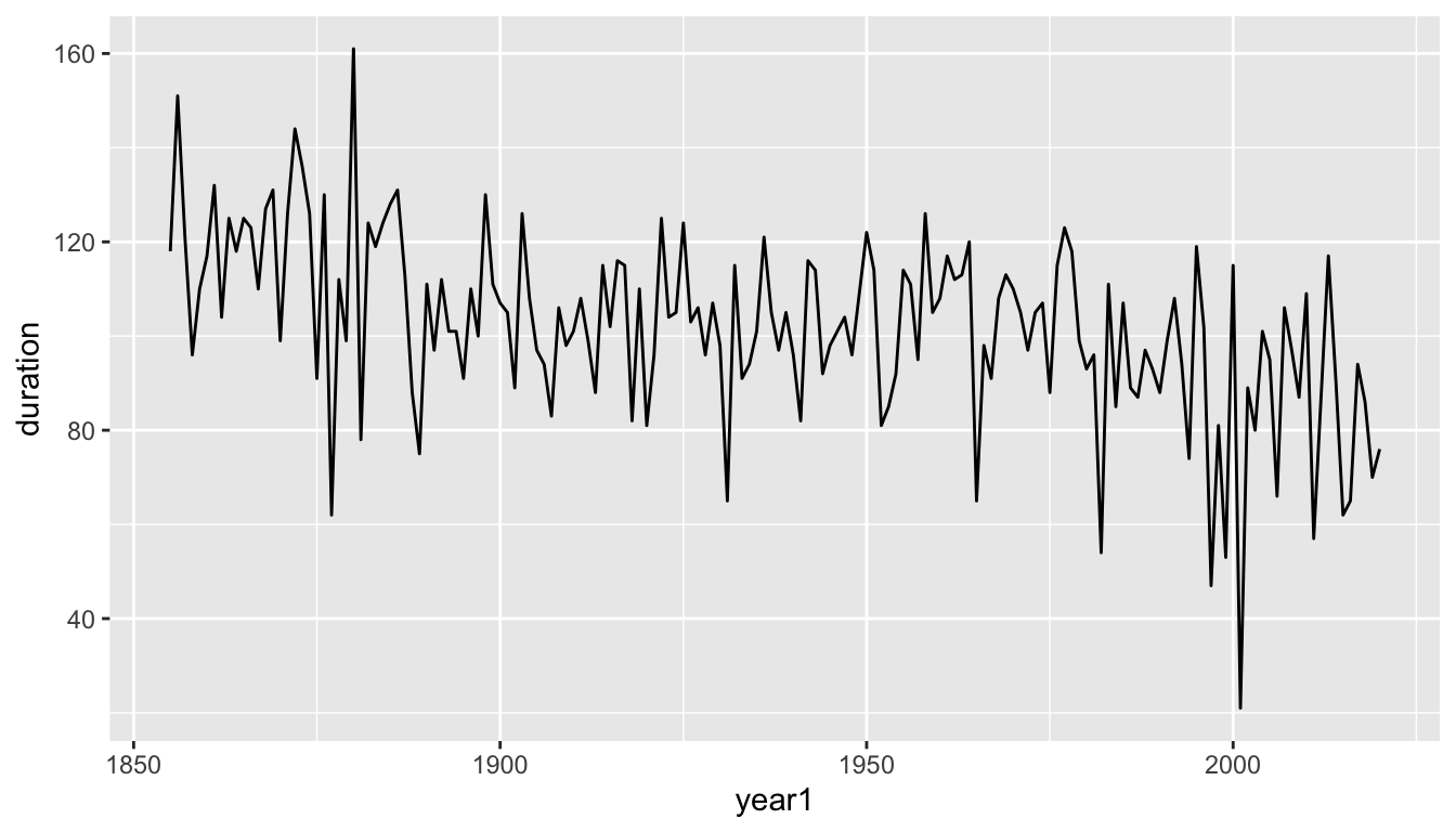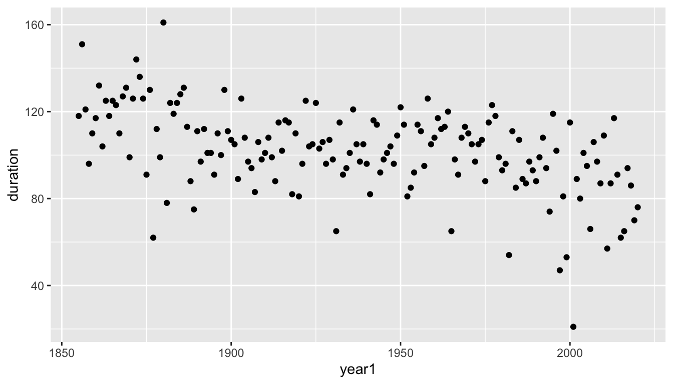 g = ggplot(mendota, aes(x = year1, y = duration)) +